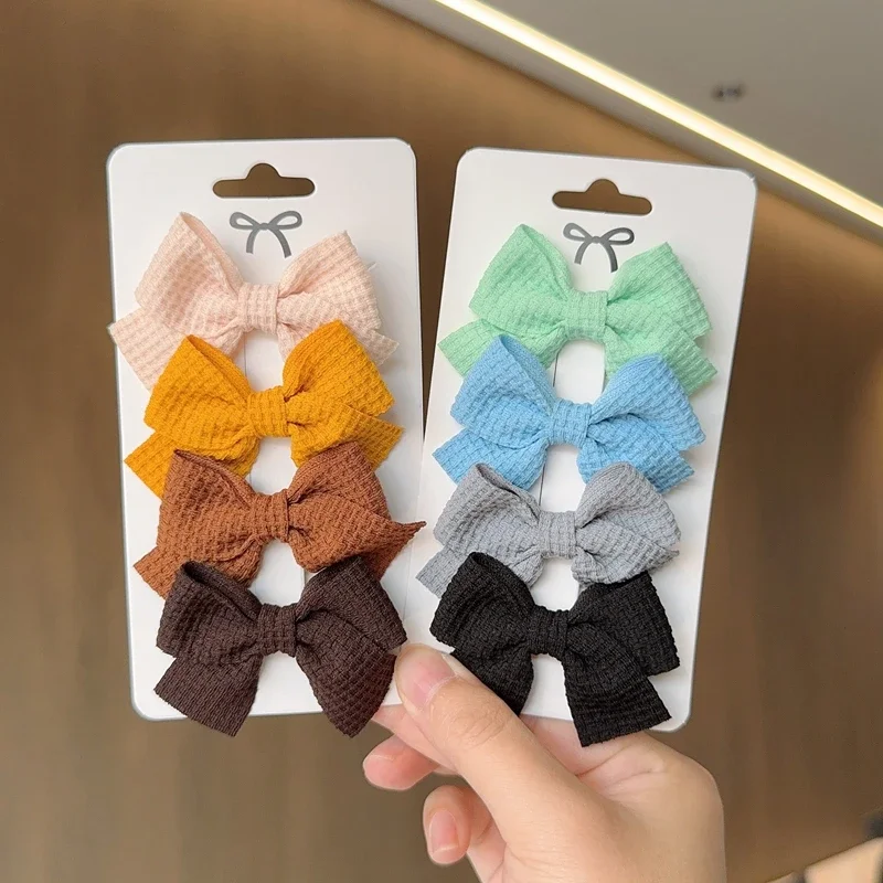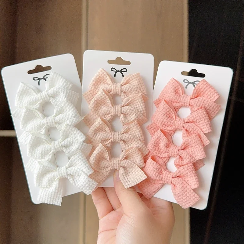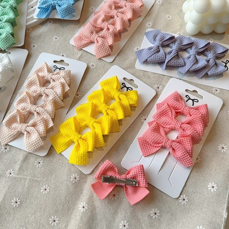Color: light green - 4PCS Soft Cotton Bow Hairpin Girl Sweet Plaid Design Hairpin Color Block Delicate Hairgripe Barrettes Kawaii Child Accessories