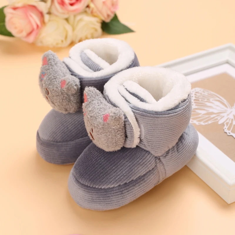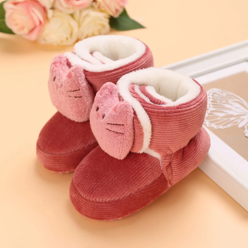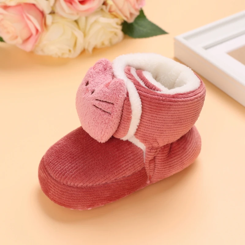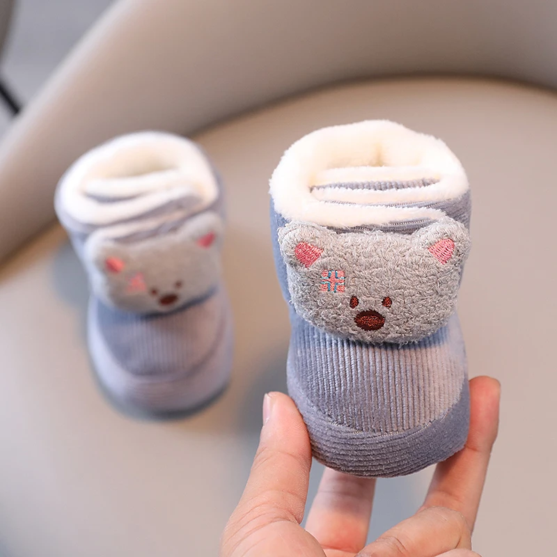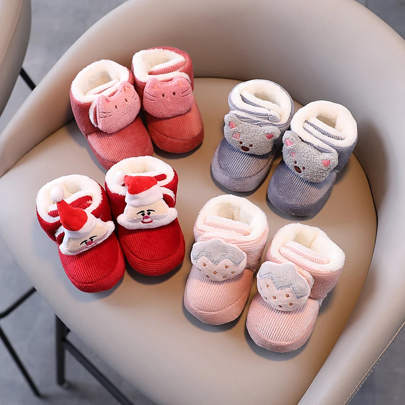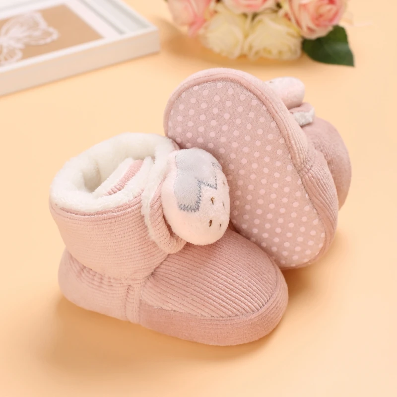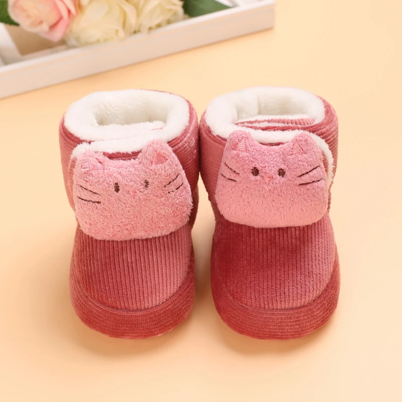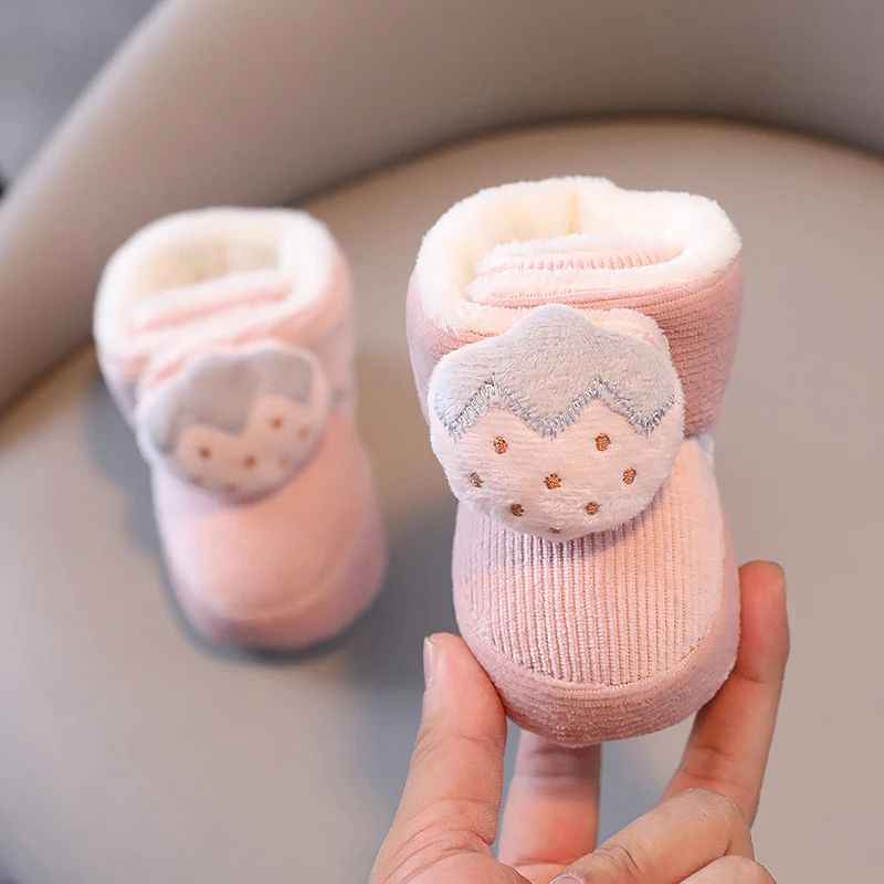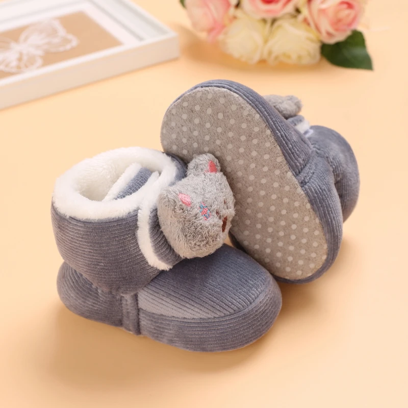 Color: light green, Baby Age: 7-12 Months - Winter New Cute Cartoon Baby Booties Boy Girl Boots Cotton Soft-Sole Non-Slip Warm Toddler First Walkers Infant Crib Shoes