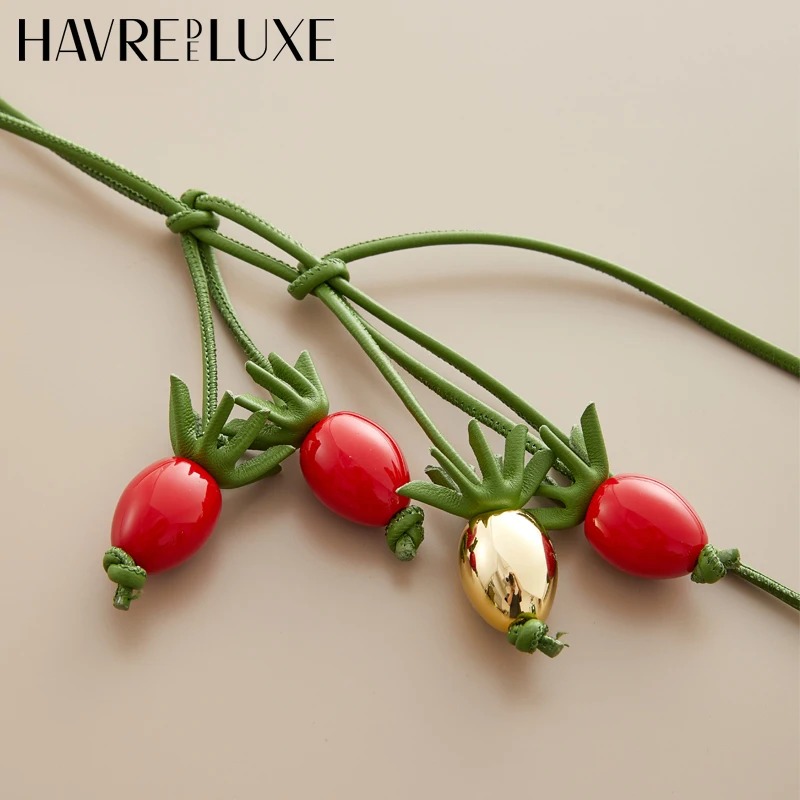 Color: light green - Cowhide bag charm exquisite tomato string pendant woman all-match cute backpack pendant bag accessories