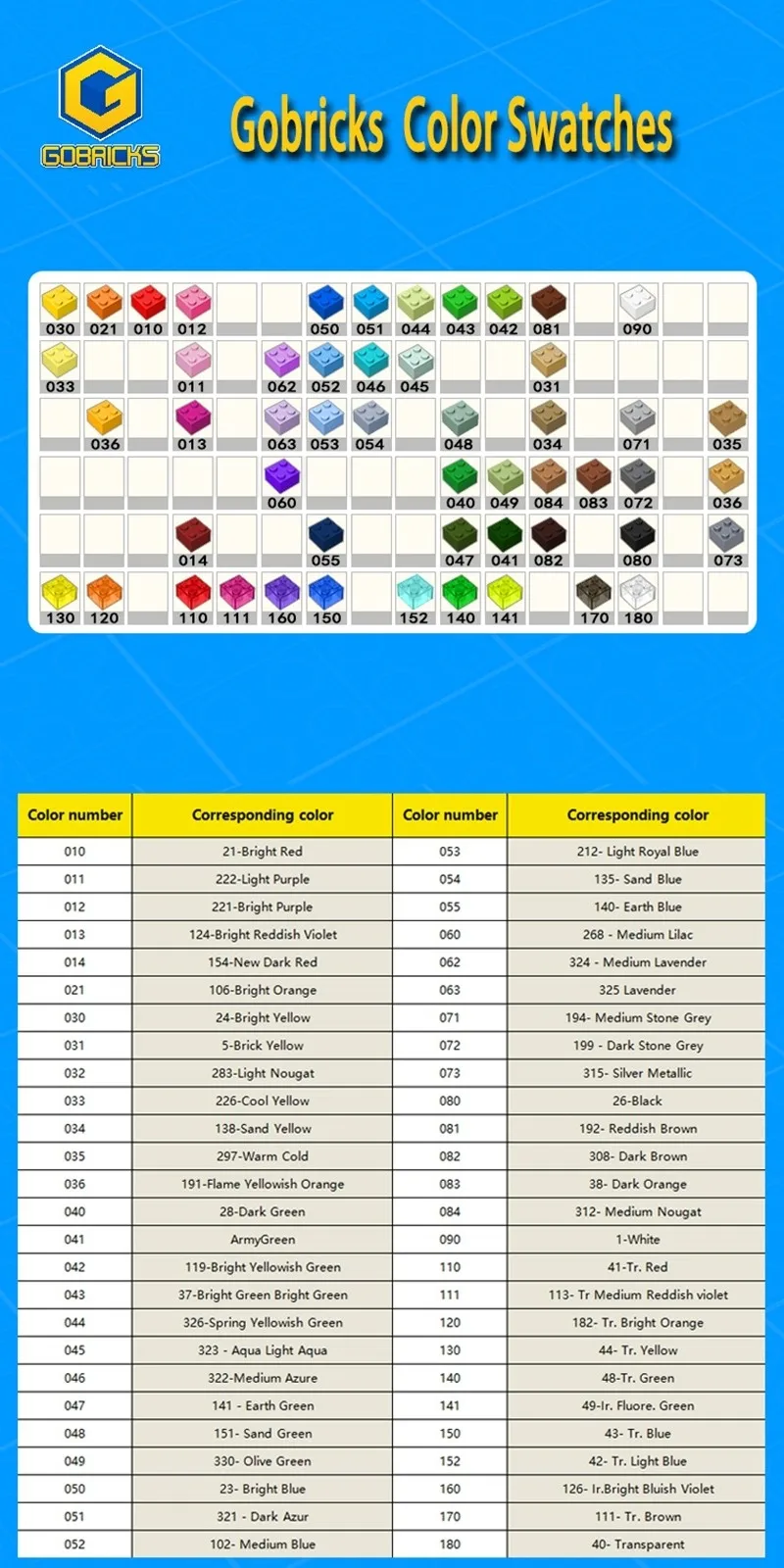 Gobricks has a wide selection of bricks in a wide range of colours,It has the quality of bricks,you can find many of the bricks you need here