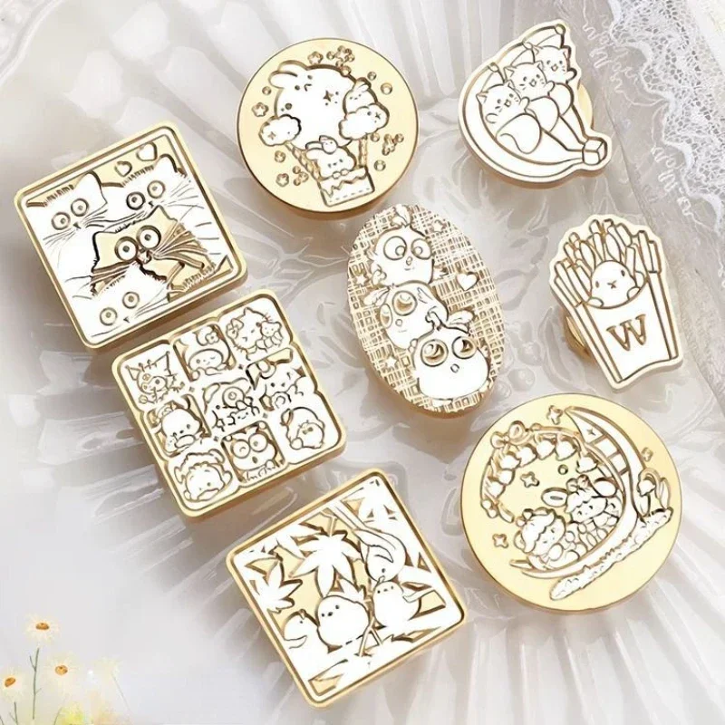 Color: light pink - Cute Kawaii Alloy Stamp Header Wax Seal Stamp Embossed Decoration Wedding Invitations DIY Envelope Packaging Scrapbooking