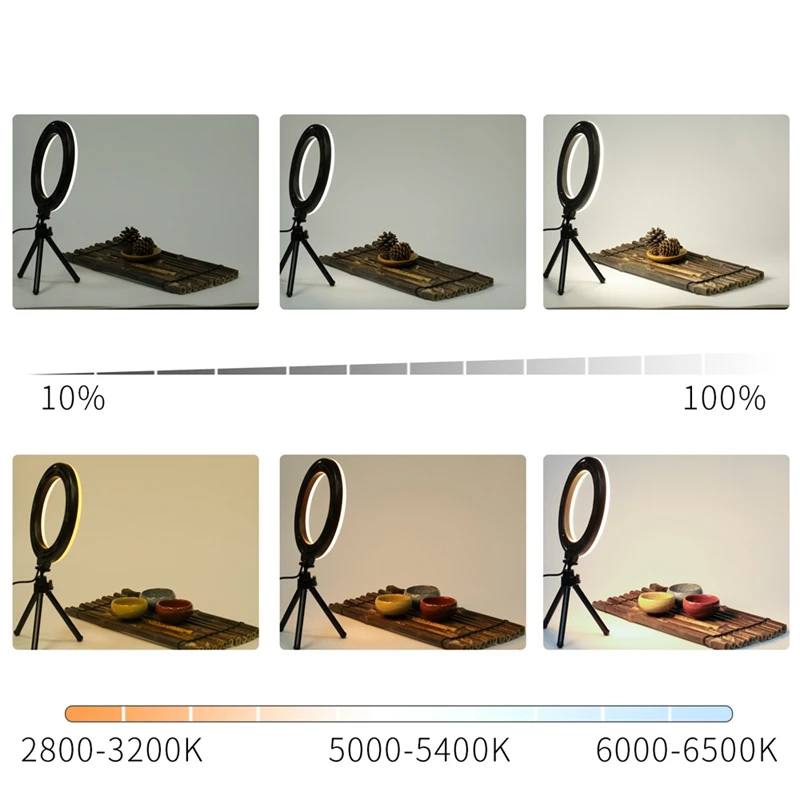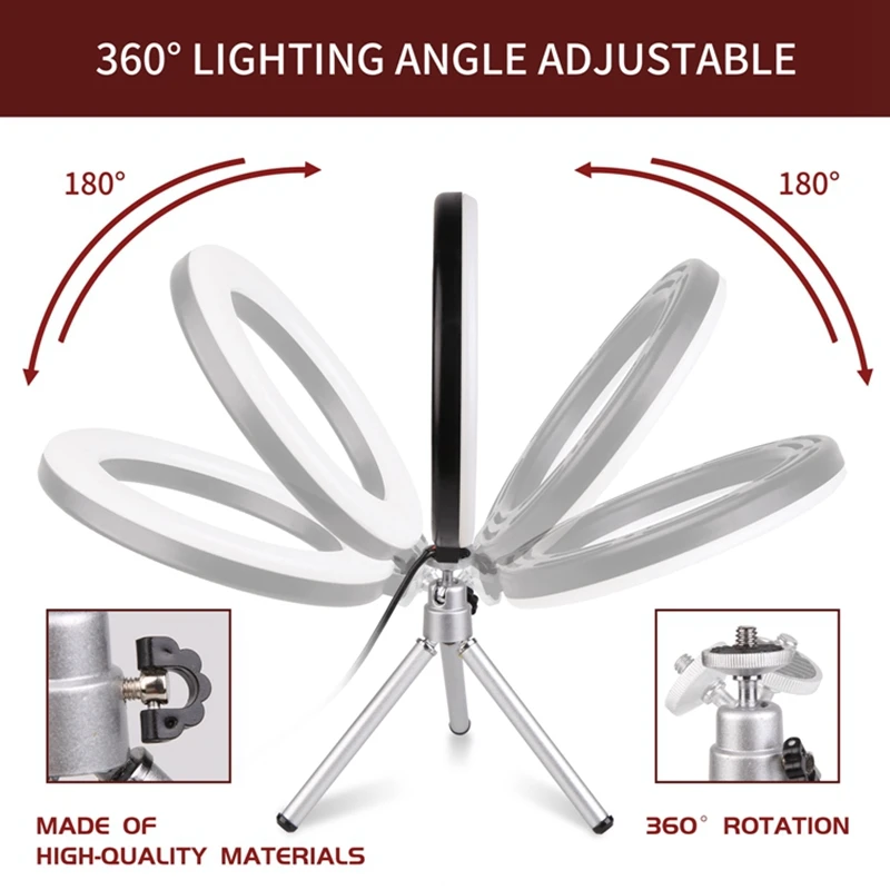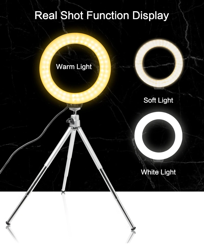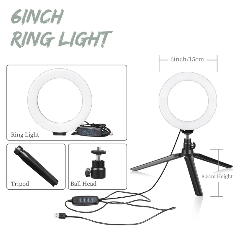 Color: light yellow, Ships From: CHINA - 6inch Mini LED Desktop Video Ring Light Selfie Lamp With Tripod Stand USB Plug Table Lamp For Make TikTok Youtube Makeup Video