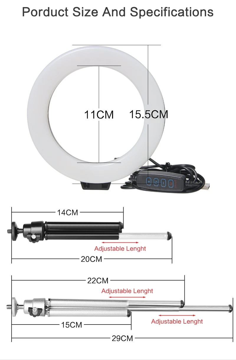 USB Plug Powered:ring light power can be connect with computer,mobile power etc.