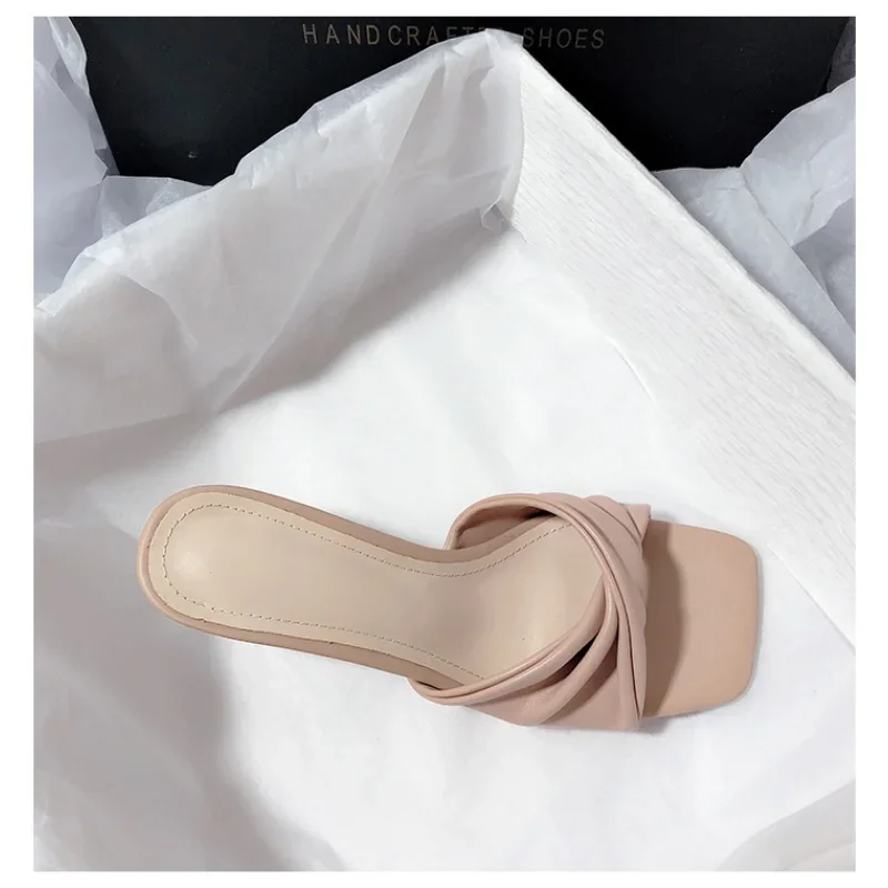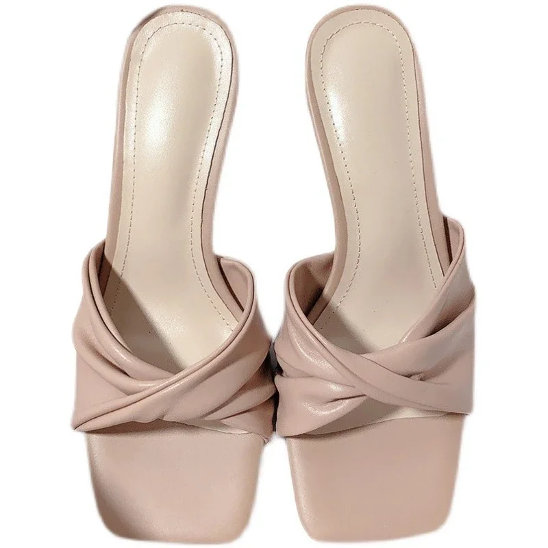 Color: light yellow, Shoe Size: 42 - Fashion Summer Women Shoes New Handmade Square Open Toe High Heels Outdoor Fashion Slippers Apricot Off White
