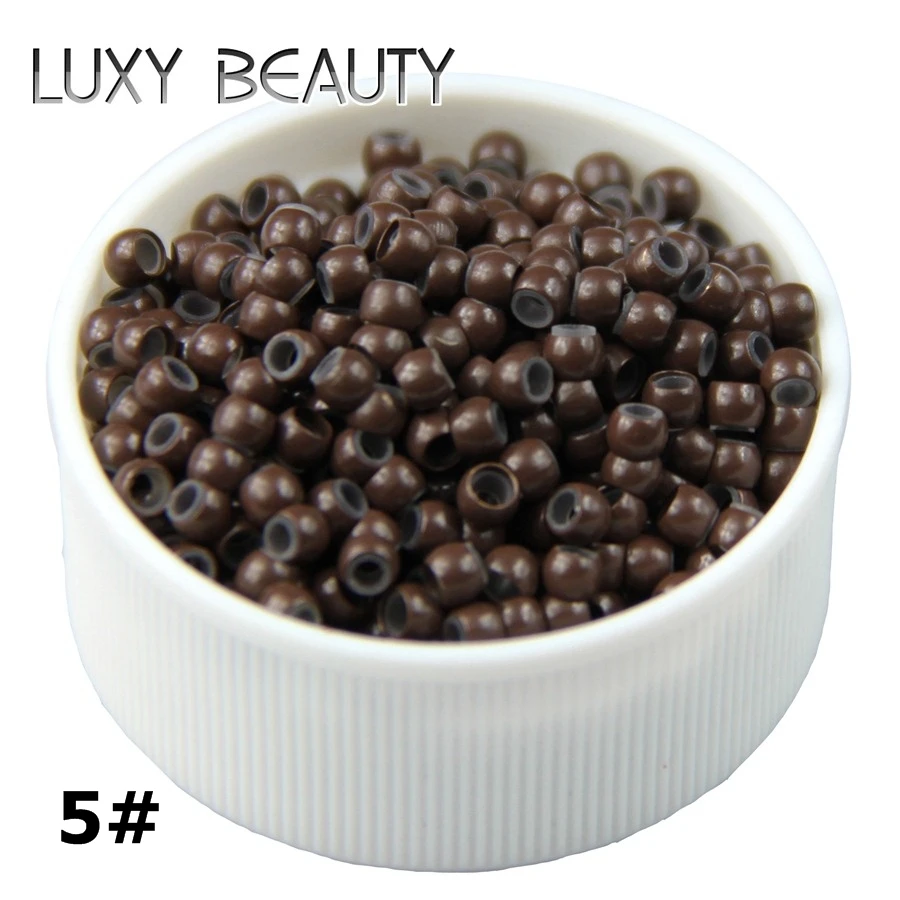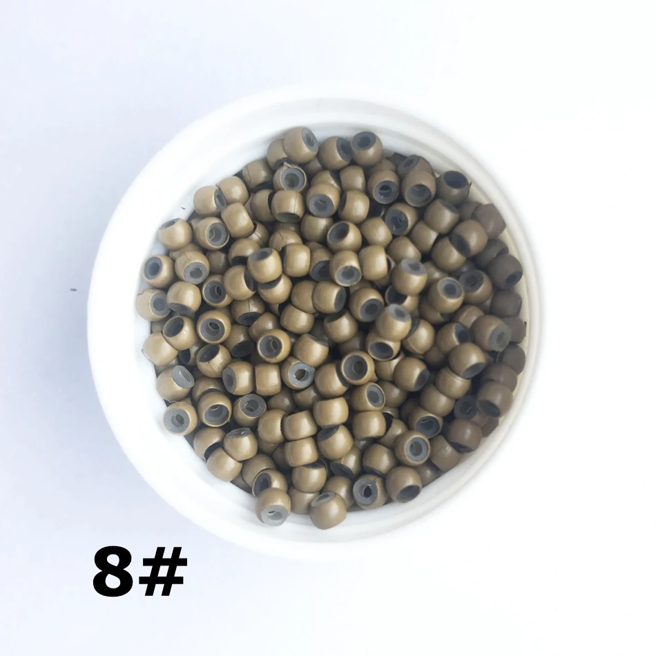 Color: Medium Brown - 500pcs Silicone Hair Beads Nano Ring Micro Beads Fashion Salon Hairstylist Dreadlock Hair Extension Tools 8 Colors