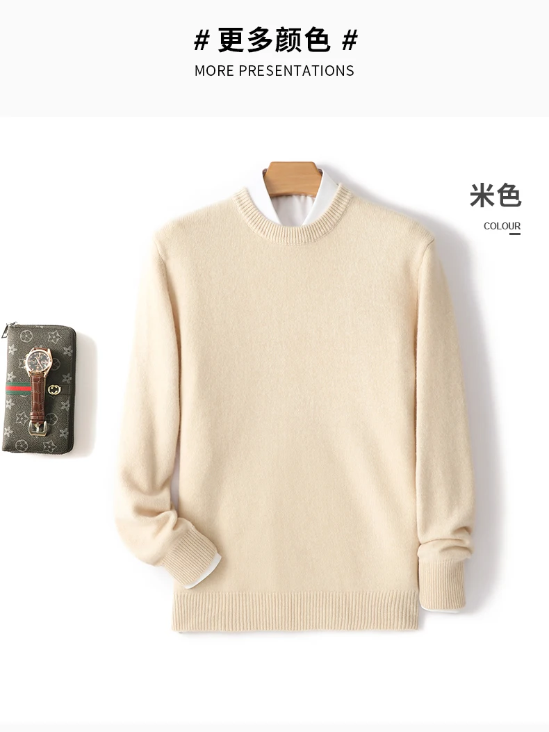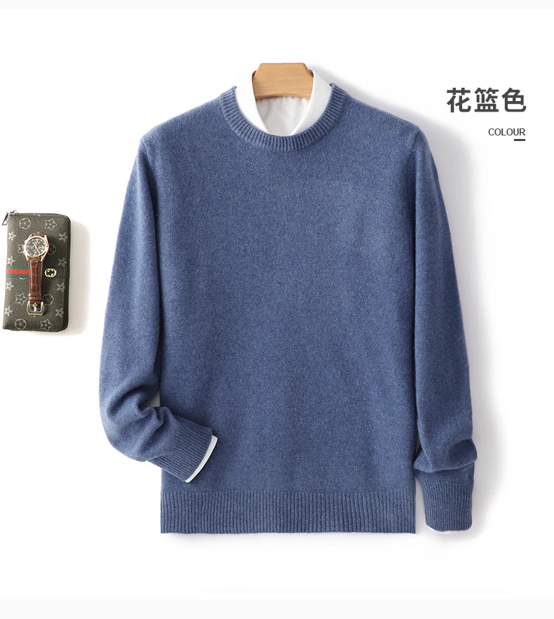 Color: Mint, Size: L, Ships From: CHINA - Men's 100% Pure Wool Cashmere Sweater O-Neck Pullover Knit Sweater Autumn and Winter New Long Sleeve High-End Jumpers Thick Tops