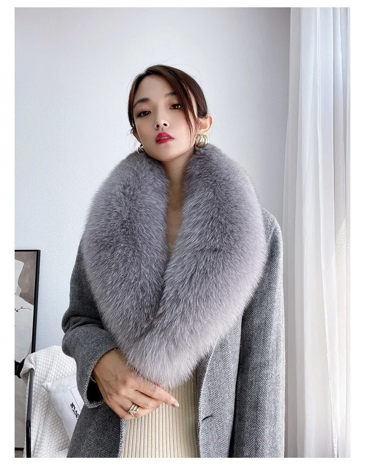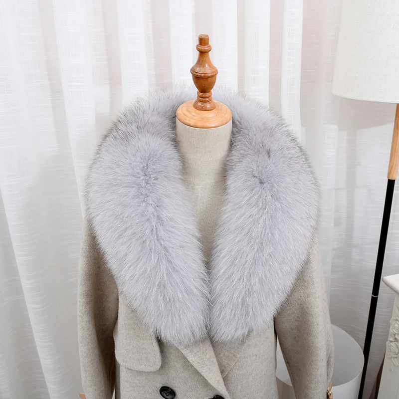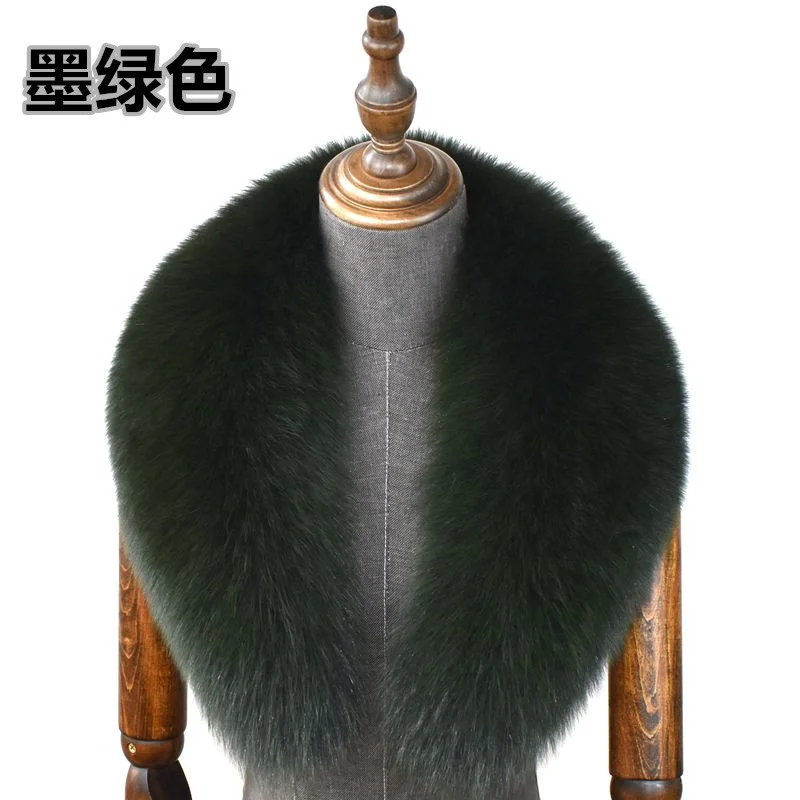 Color: Mint, Size: XXXL - 100% Natural Real Fox Fur Collar For Women Men Coat Jacket Fur Scarf Winter Extra Large Size Neck Warmer Fur Scarf Shawls Wraps