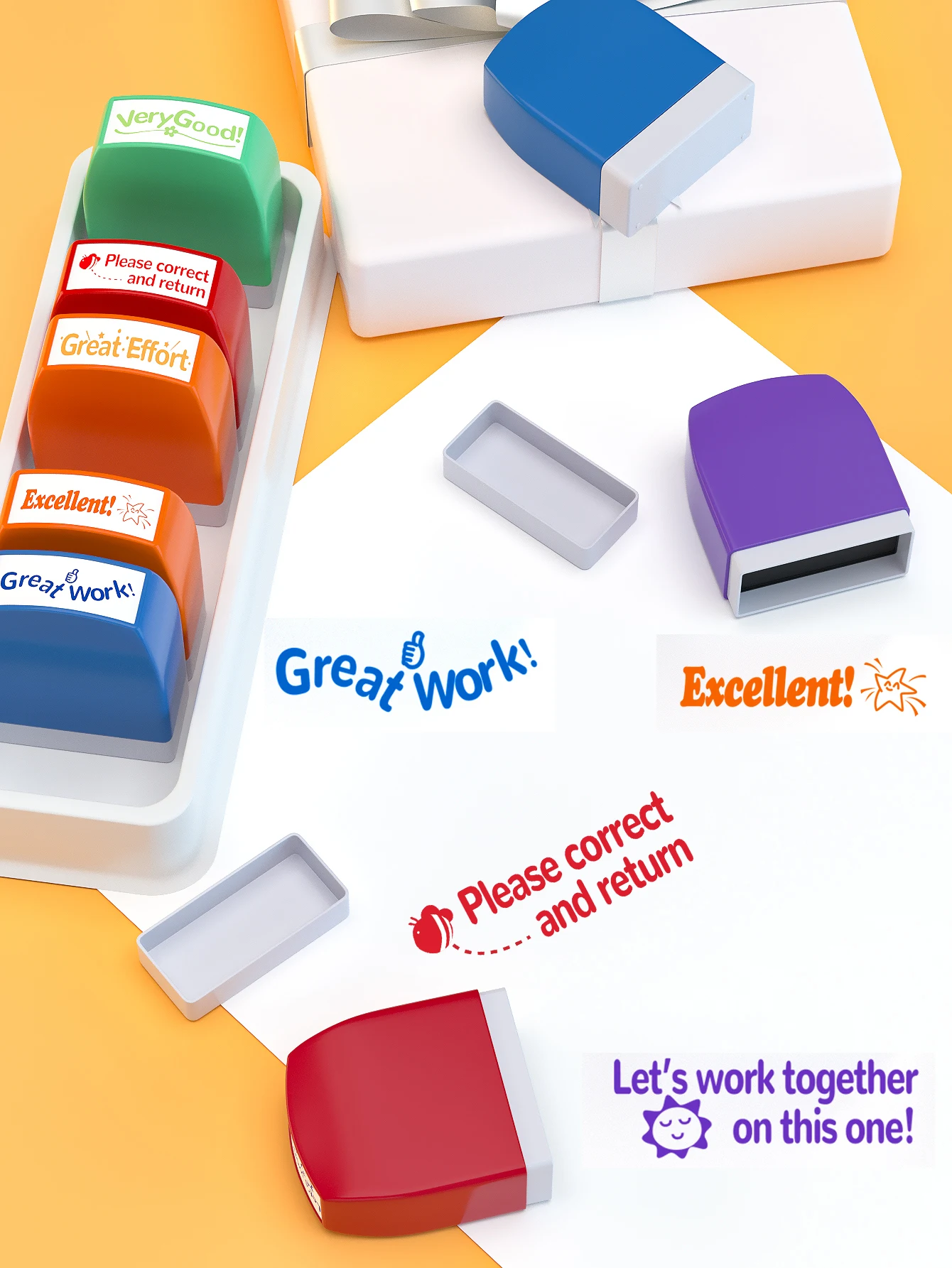 Color: MULTI - 8 teacher stamps Automatic inking stamps for classroom Teacher Fun Personalized teacher stamps for graded office Teacher supplie