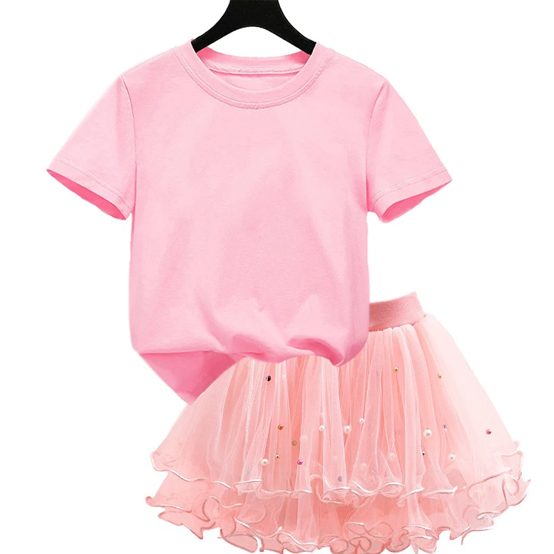 Color: MULTI, Kid Size: 3T - 2pcs Lilo Stitch Summer Girls Outfits Cartoon T-shirt and Tutu Skirt Princess Clothes Suit Children Birthday Clothing Sets