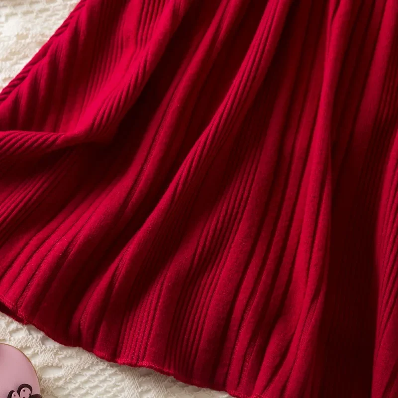Color: MULTI, Kid Size: 7 - Autumn and Winter Girls Knitted Sweater Dress Solid Color Soft Long Sleeve Dress Children Christmas Costume Birthday Casual Wear