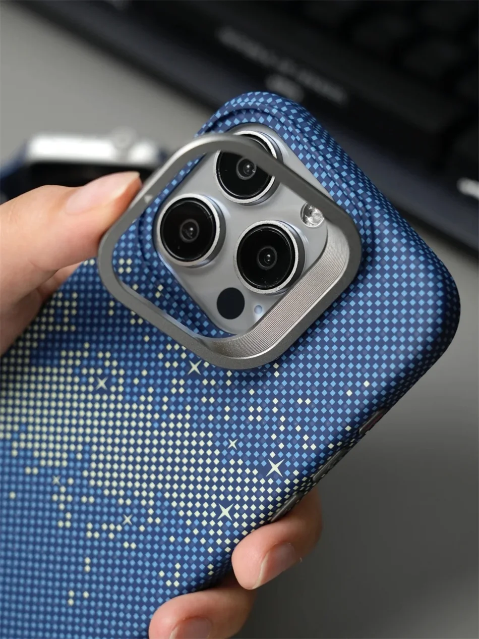 Color: MULTI, Material: EVA - Luxury Magnetic Stand Metal Lens Relief Carbon Fibre Pattern For Magsafe Case For iPhone 15 14 13 Pro Max Shockproof Back Cover