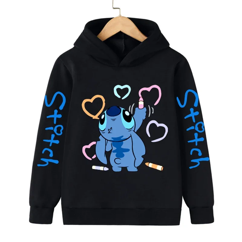 Color: MULTI, Size: >40cm - New in Cool Stitch Hoodie Children Cartoon Clothes Kid Girl Boy Lilo and Stitch Sweatshirt Manga Hoody Baby Casual Top