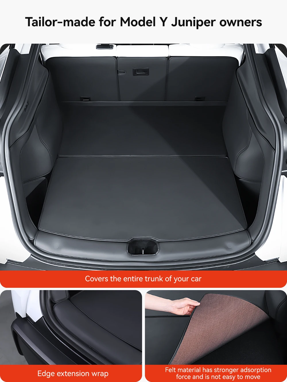 Color Name: Bronze Yellow, Ships From: CHINA - YZ For Tesla Model Y Juniper 2025 New Leather Trunk Mats Fully Surrounded Waterproof Non-Slip Liner Custom Floor Mat Accessories