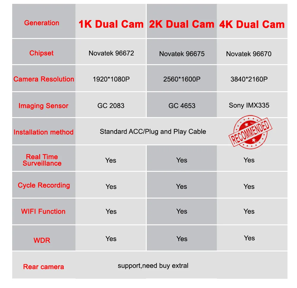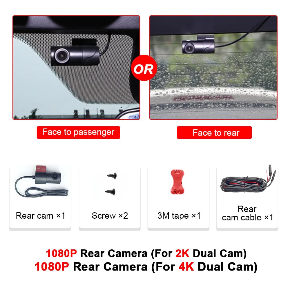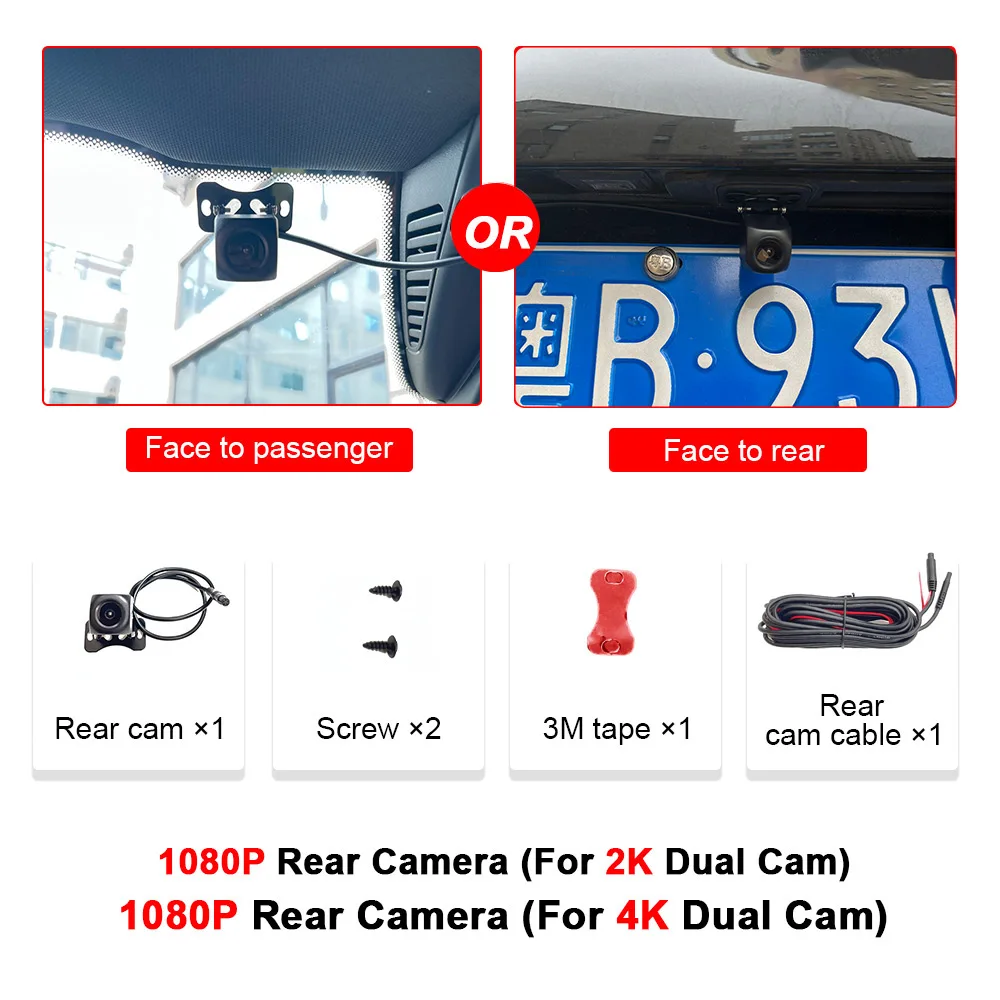 1080P Rear Camera(For 2K Dual Cam Version) / (For 4K Dual Cam Version)