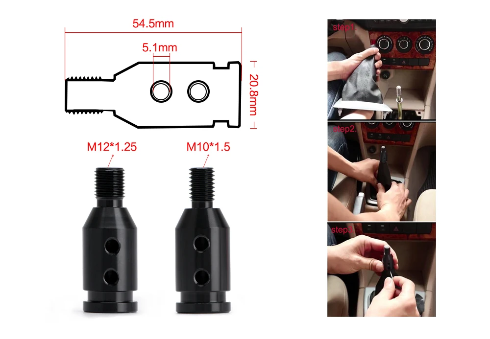 M12x1.25mm /M10x1.5mm Universal Aluminum Gear Shift Knob Shifter Adapter For Non Threaded Shifters For BMW Mini 4 Colors