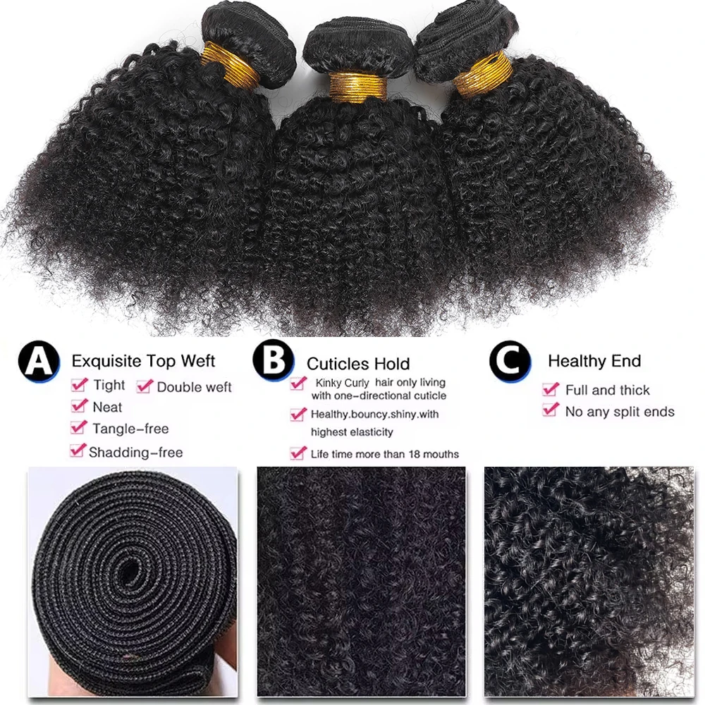 Color: Natural Color, Stretched Length: 16inches - Brazilian Afro Kinky Curly Human Hair Bundles 4b 4c Afro kinky Bulk Human Hair Weave Bundle Deal Hair Extensions Wholesale