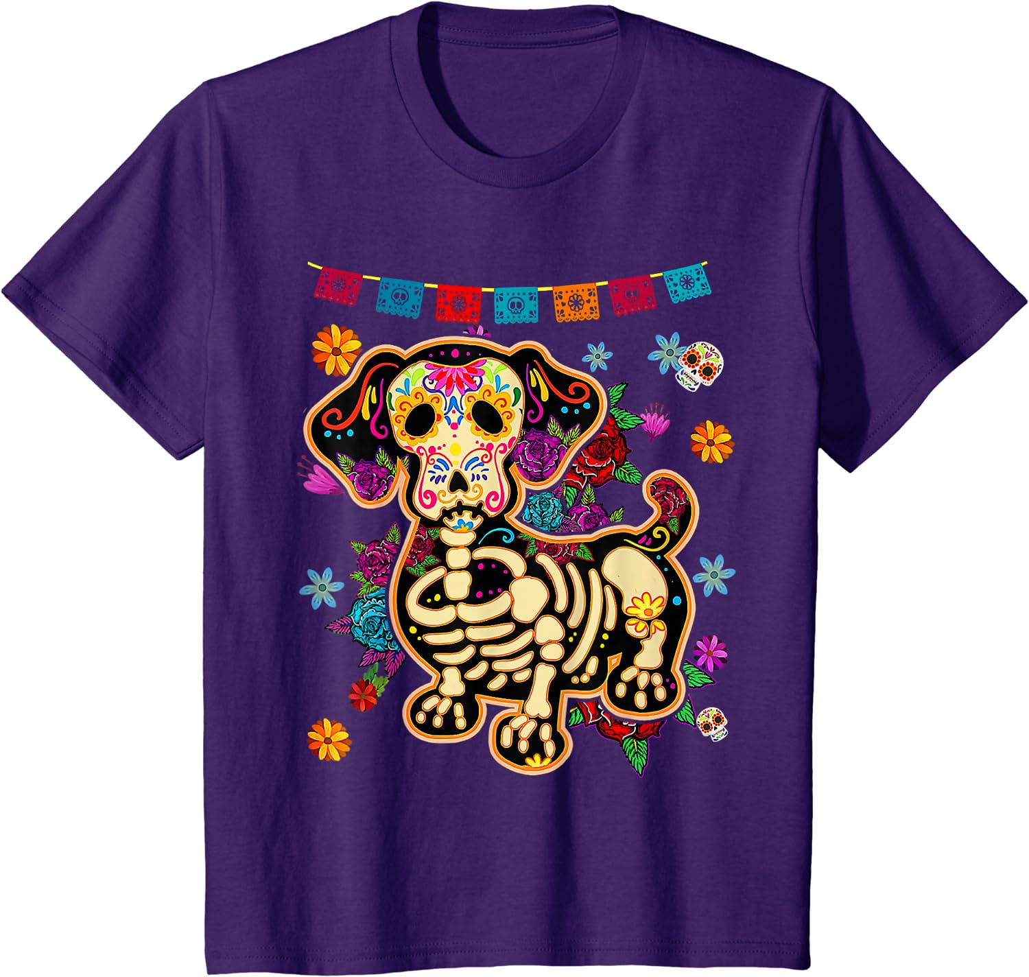 Color: Navy Blue, Size: M - Sugar Skull Mexican Dachshund Bone Halloween Day of Dead T-Shirt Casual Cotton Four Seasons Graphic T Shirts Funny T Shirts