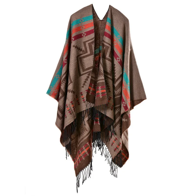 Color: Navy Blue, Size: One Size - European American Popular Tassel Thickened Cashmere Like National Style Travel Fork Shawl Scarf in autumn Ponchos Capes P9