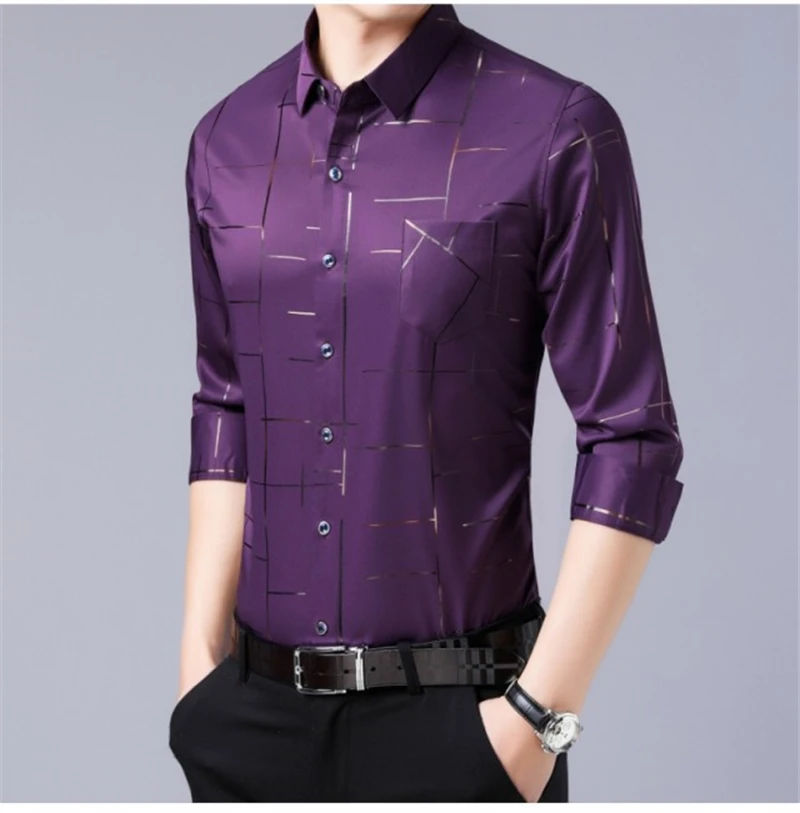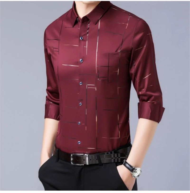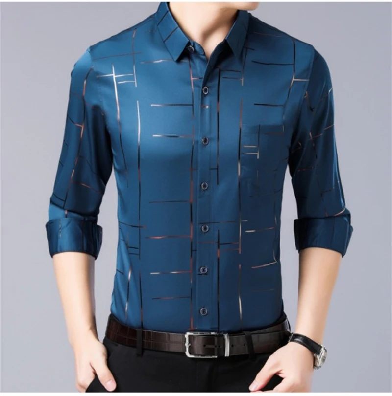 Color: Navy Blue, Size: S - Men's Casual and Fashionable Long Sleeved Printed Shirt, Non Ironing and Wrinkle Resistant Business Top