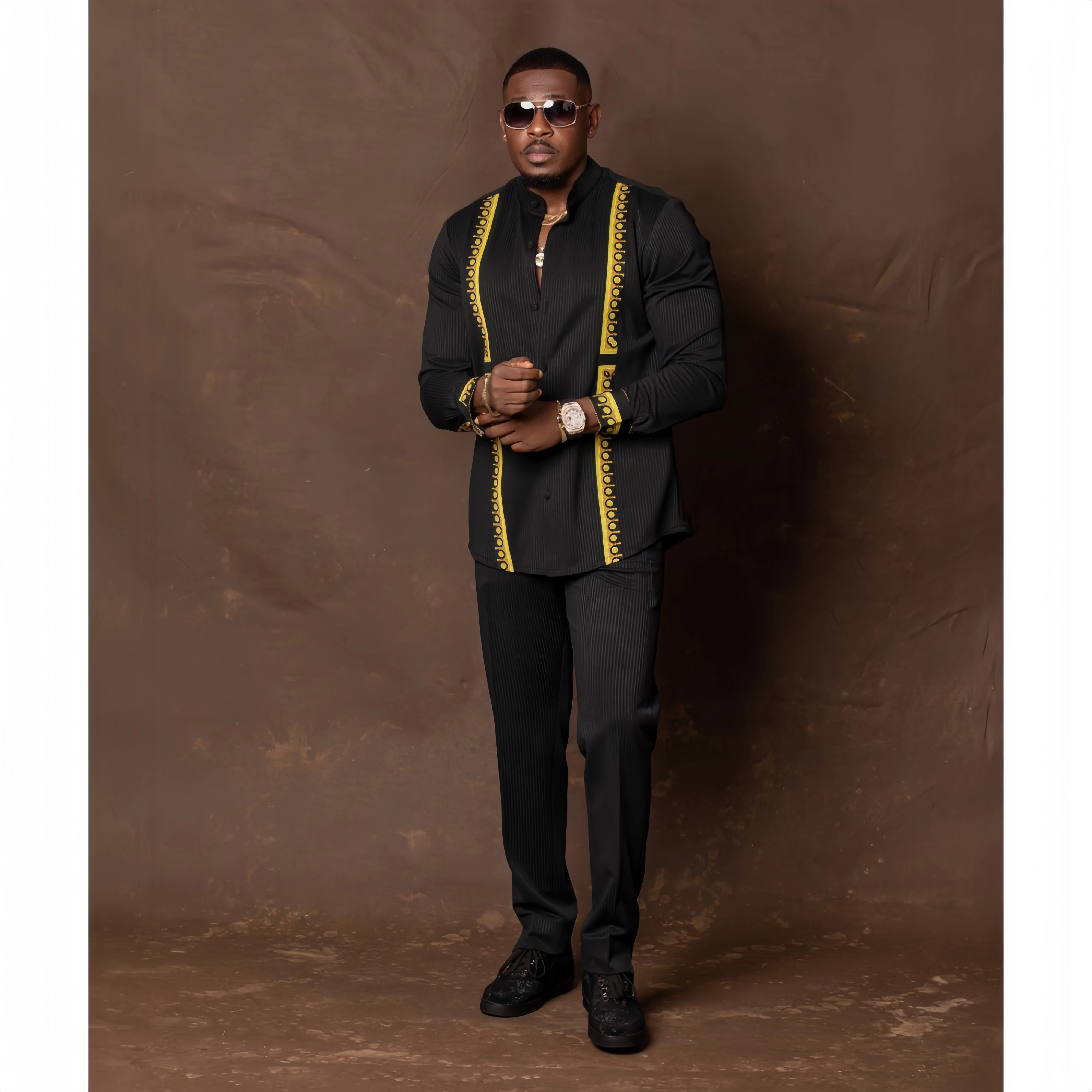 Color: Navy Blue, Size: XL - 2025 new traditional men's suit luxury gentleman's shirt suit casual travel banquet men's two-piece set fashionable men's suit