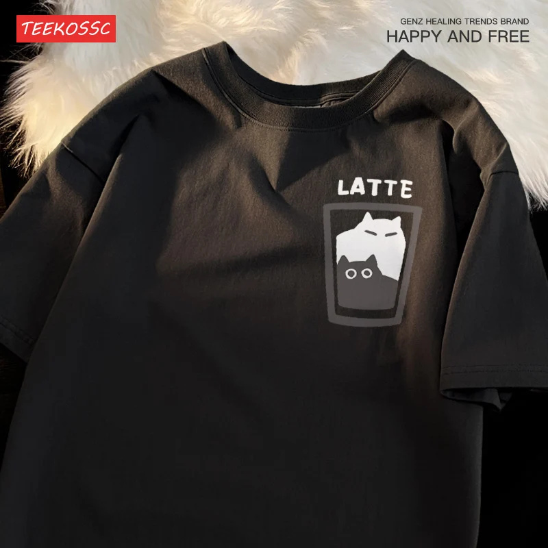 Color: Navy Blue, Size: XXXL - Mocha Latte Couple Outfit Cat Coffee Couple Male T-Shirts Graphic Cool Tee Shirt High-Quality Oversized Tshirt Comfort Soft