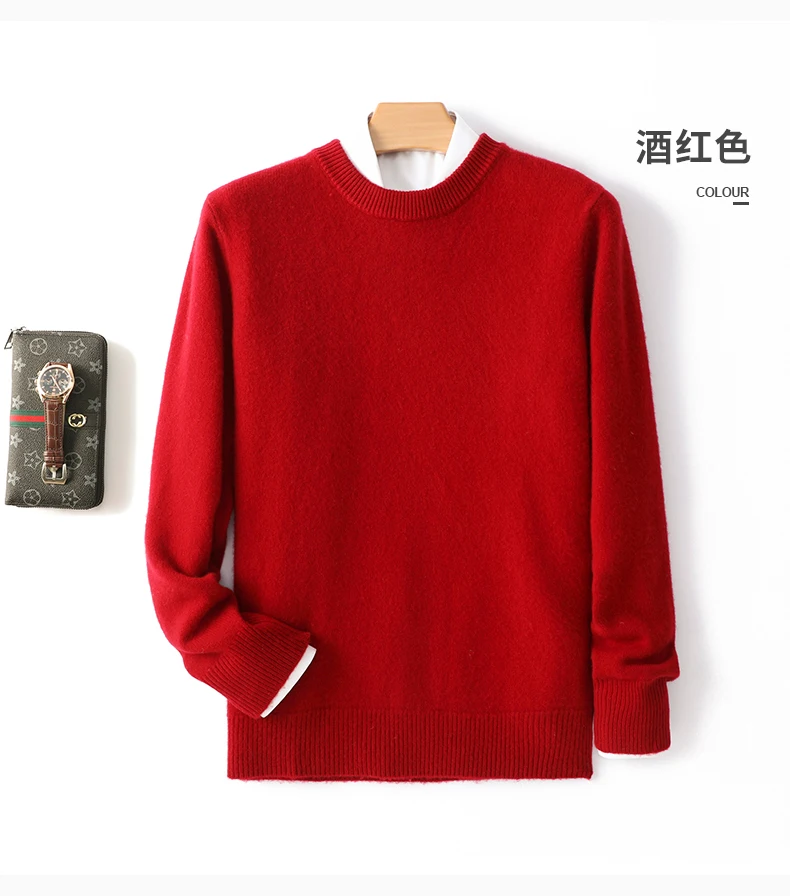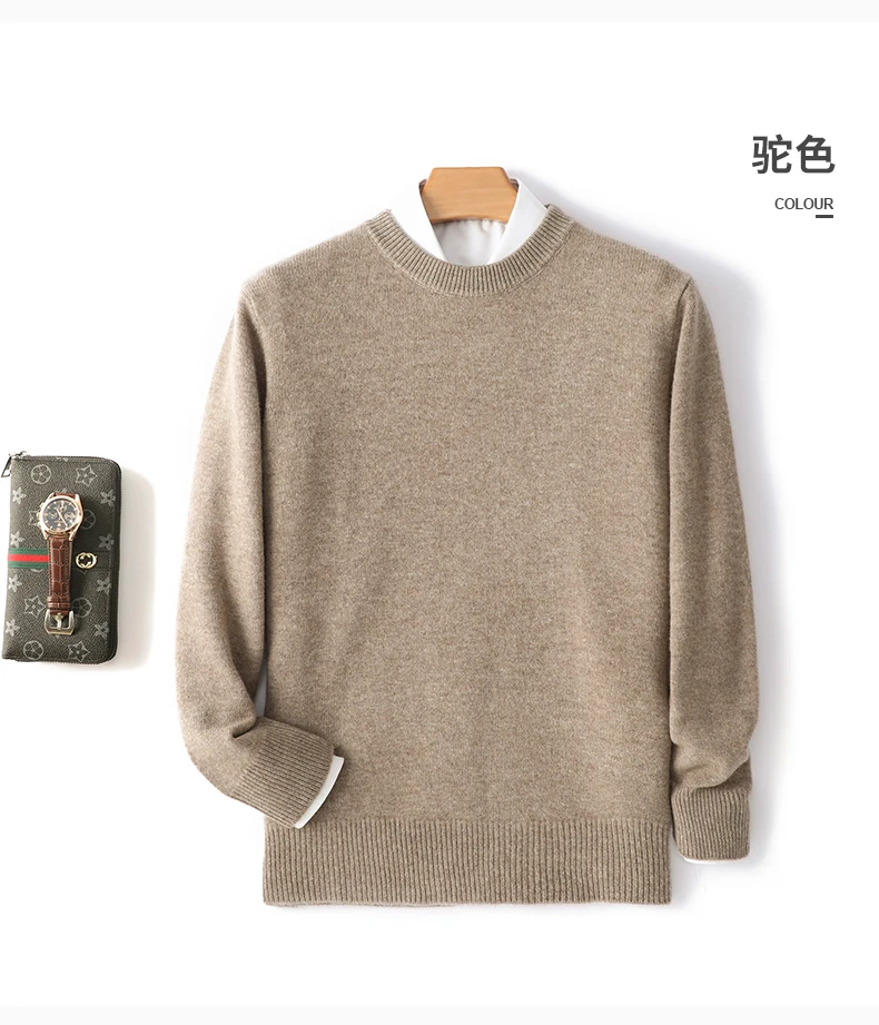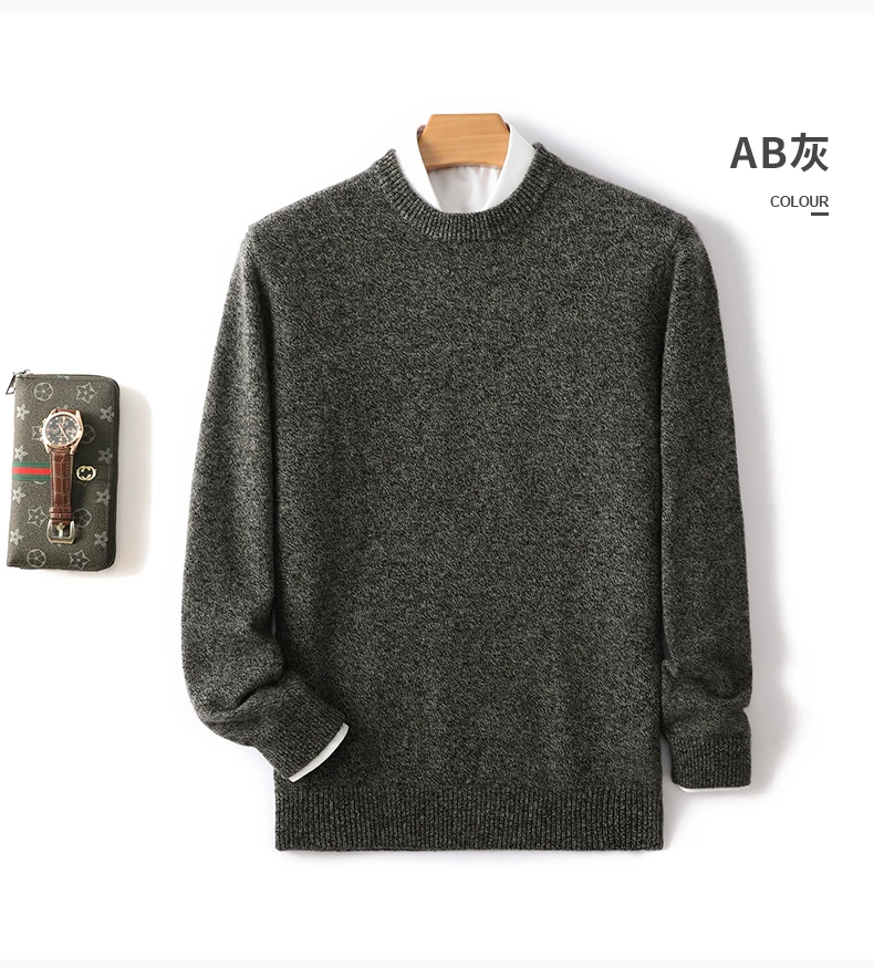 Color: Navy Blue?€ AE existing skus?‰, Size: L, Ships From: CHINA - Men's 100% Pure Wool Cashmere Sweater O-Neck Pullover Knit Sweater Autumn and Winter New Long Sleeve High-End Jumpers Thick Tops