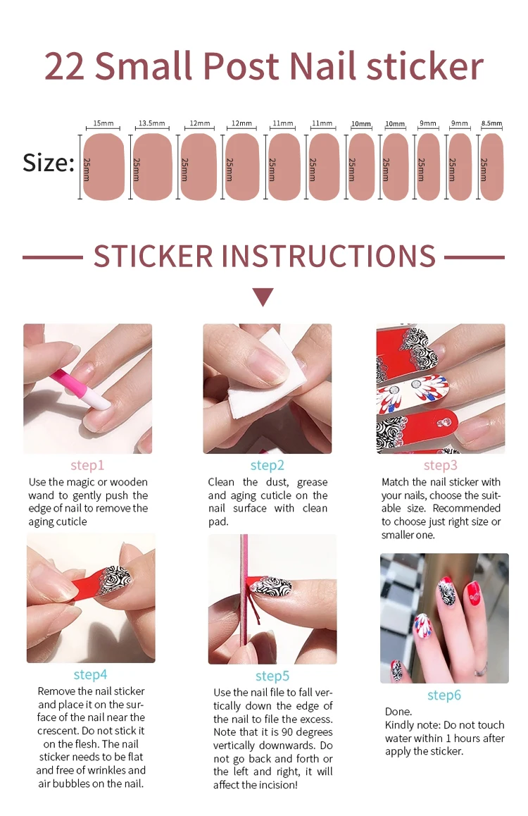 2.Do not touch water within 1 hours after apply the sticker.