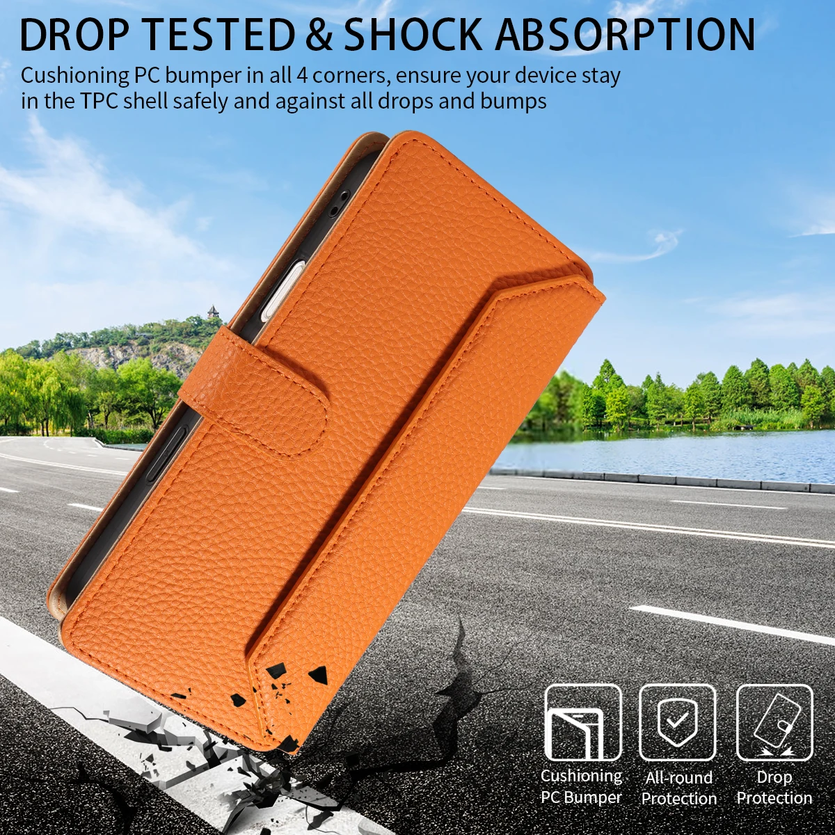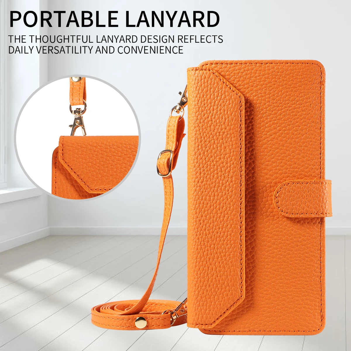 Color: Orange, Bundle: Case & Strap, Material: Artificial Leather, Compatibility by Model: Galaxy S23 - Crossbody Leather Phone Case for Samsung Galaxy S25Edge S25Ultra S24FE S24Ultra S23Ultra Multi-Card Slot Anti-Drop Wallet Case