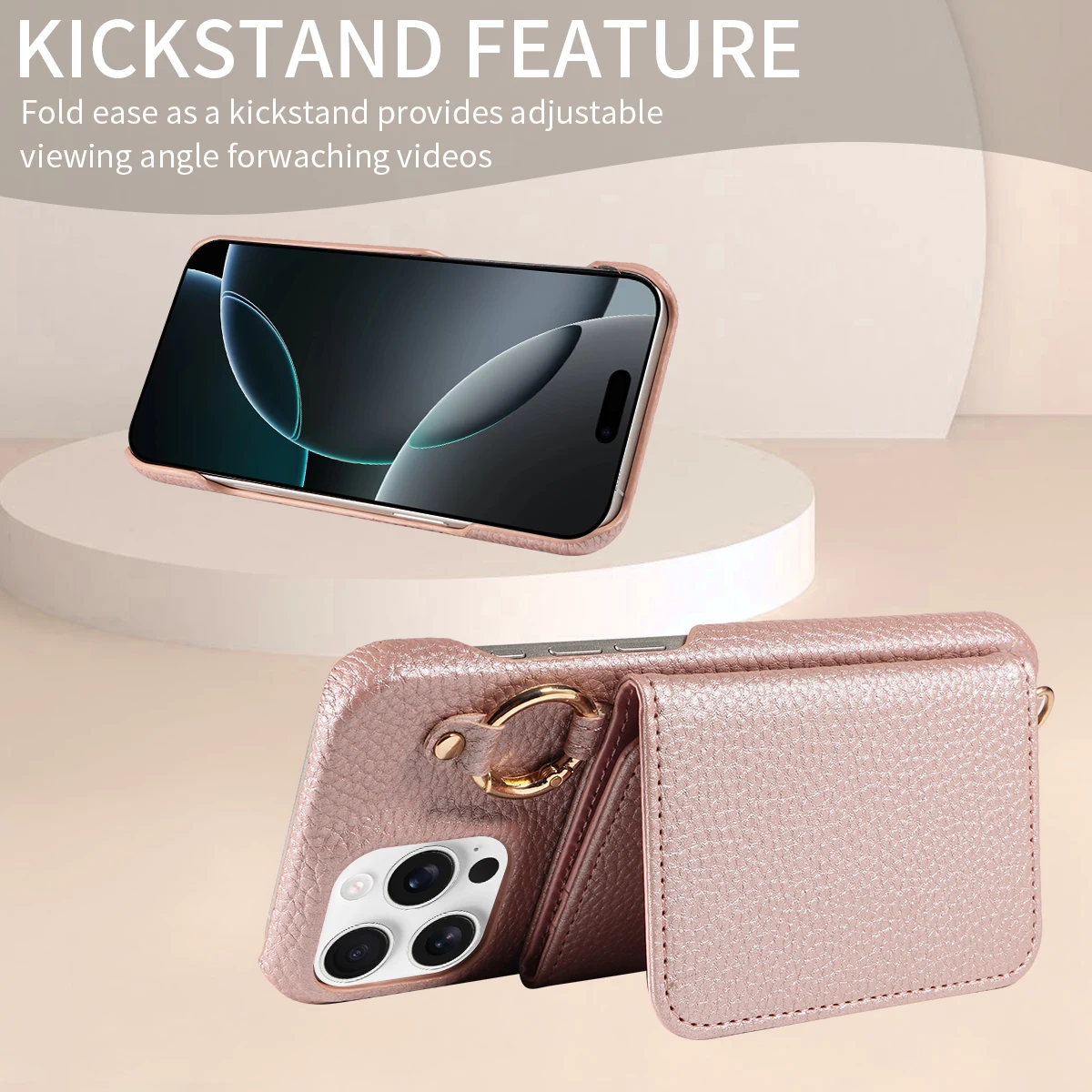 For IPhone16 15 Pro Max 14 13 12 Series PU Leather Magsafe Magnetic Wireless Charging Shockproof Crossbody Wallet Phone Case