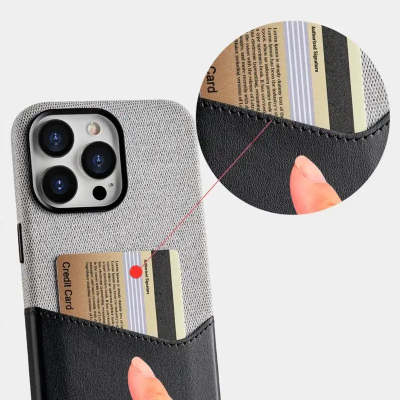 Color: Orange, Material: Denim - Card Holder MagSafe Leather Phone Case For iPhone 15 14Pro Max 13 14 Pro 12 Pocket Wireless Charging Alloy Lens Hit Color Cover