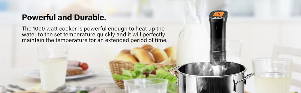♦ Powerful&Durable:The precision cooker has adopted stainless steel column and high-end fast heating element. The 1000Watt cooker is powerful enough to heat up the water to the set temperature quickly and it will perfectly maintain the temperature for an extended period of time.