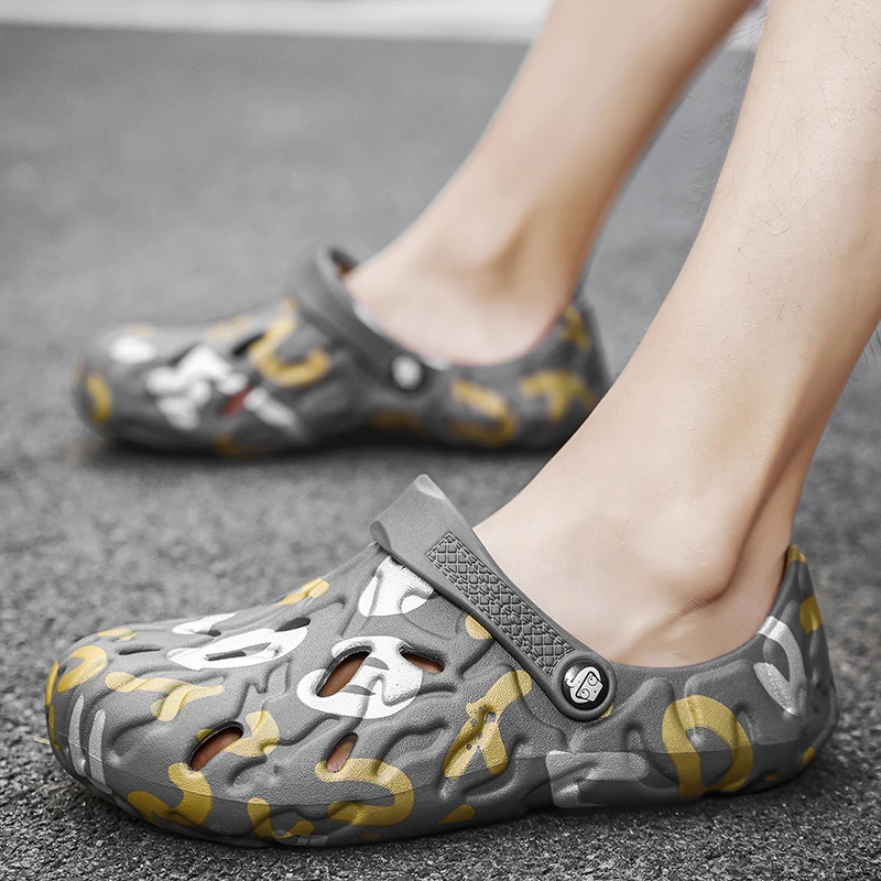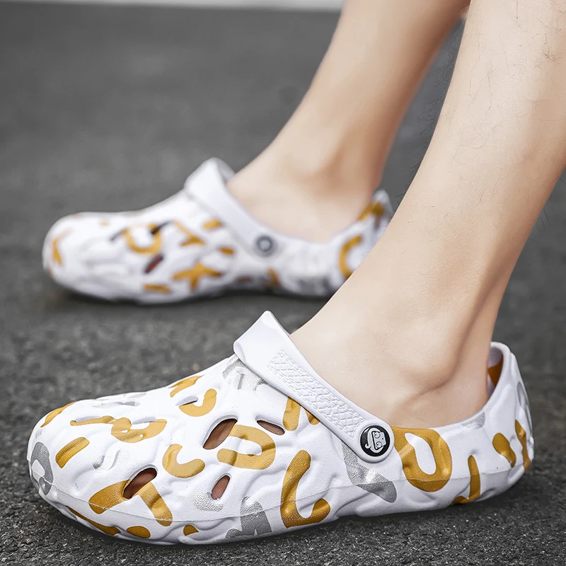 Color: Orange, Shoe Size: 40 - Men Summer Slippers Thick Sole Mens Clogs Sandals Hollow Breathable Flip Flops Sandals Shoes Fashion Beach Slippers