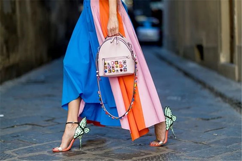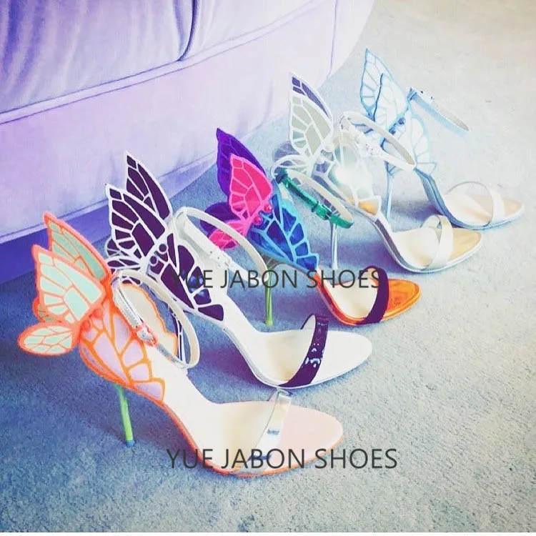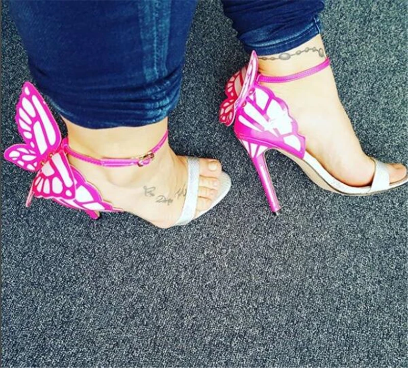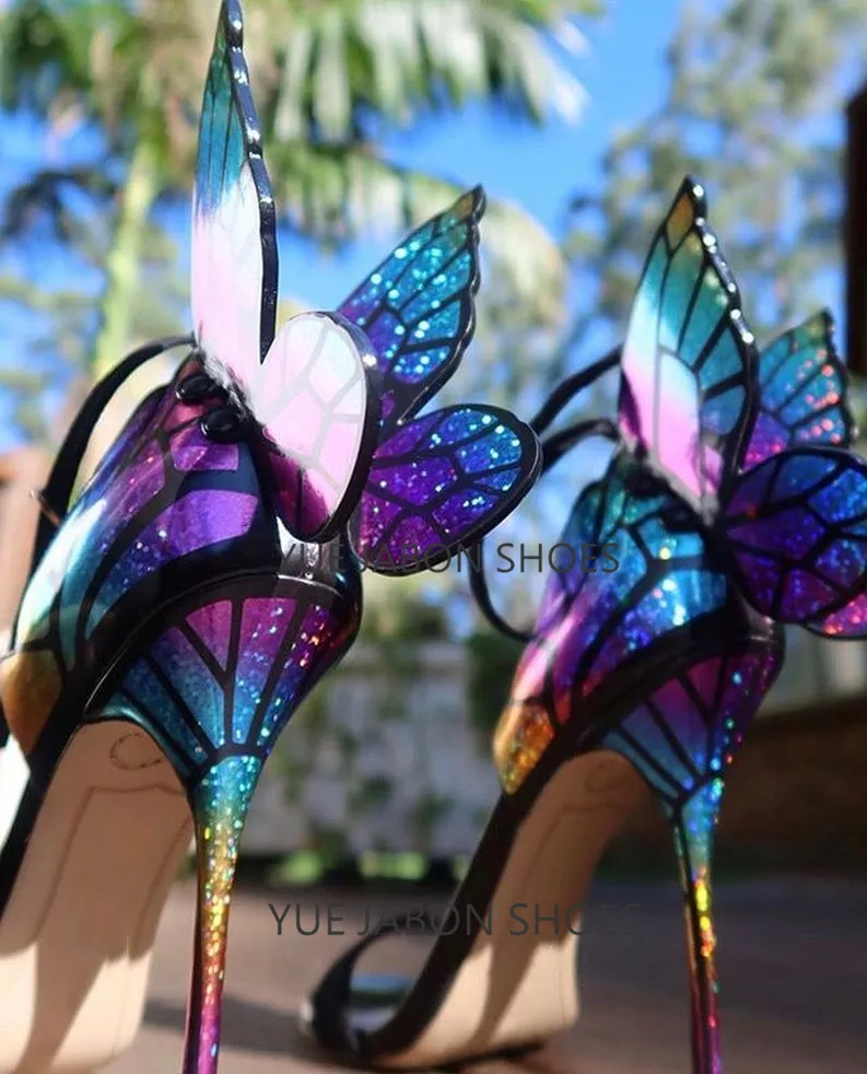 Color: Orange, Shoe Size: 5 - Women Summer Sandals Fashion Embroidered Satin Butterfly High Heeled Footwear Adjustable Ankle Strap Shoes Women high heels