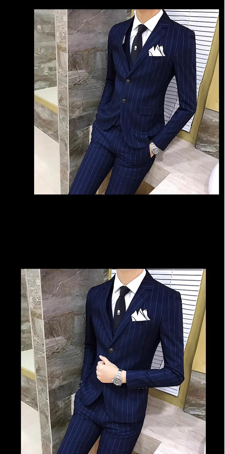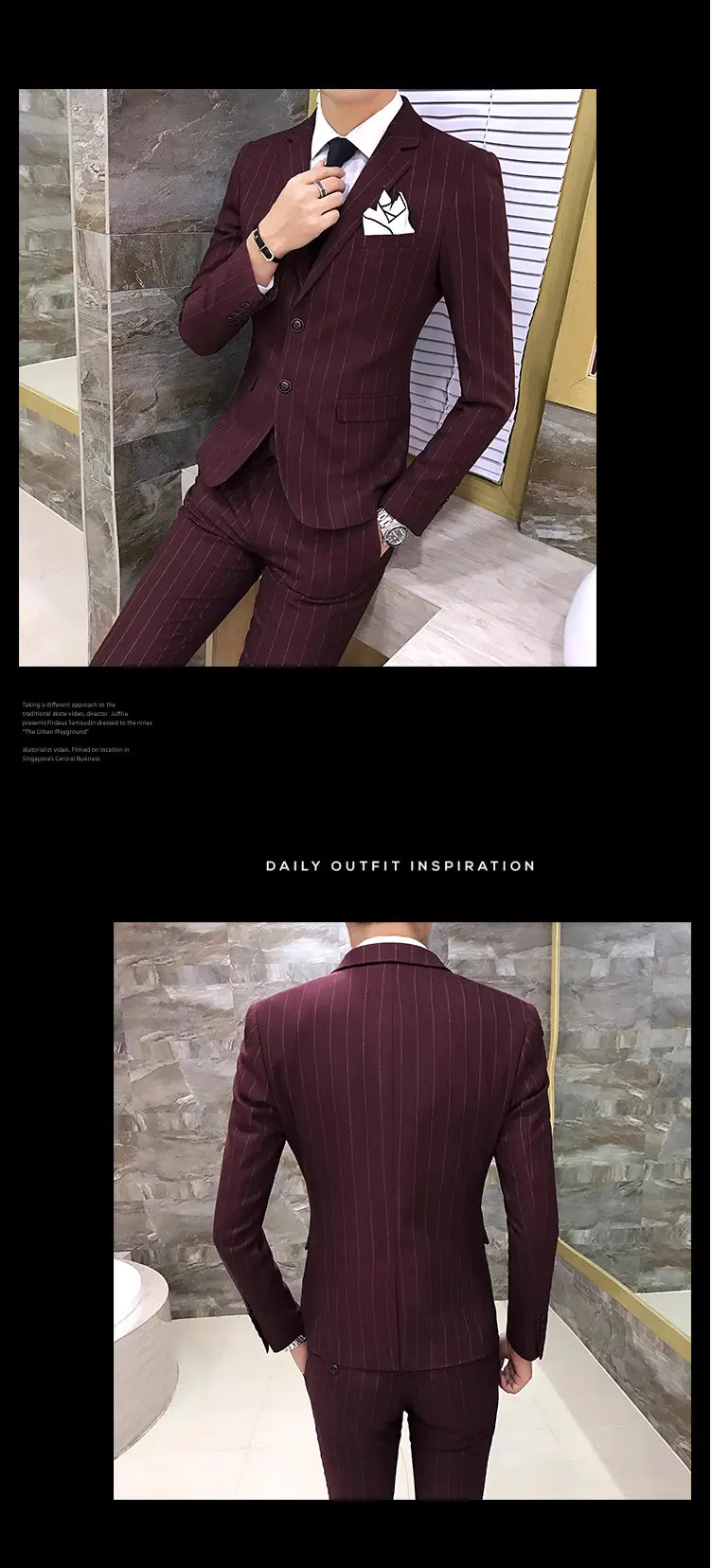Color: Orange, Size: XL - Gray Men Classic Striped/Checked Suits, Business Office 3 Piece, Asian Size Slim Fit Men Dress Jacket & Pants with Vest, S-4XL