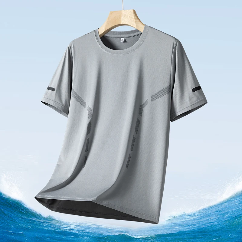 Color: Orange, Size: XXL - Men's Silk Ice Round Collar T-shirt, Simple Running Fitness Suit, Breathable Thin T-shirt, Quick Dry T-shirt, Summer