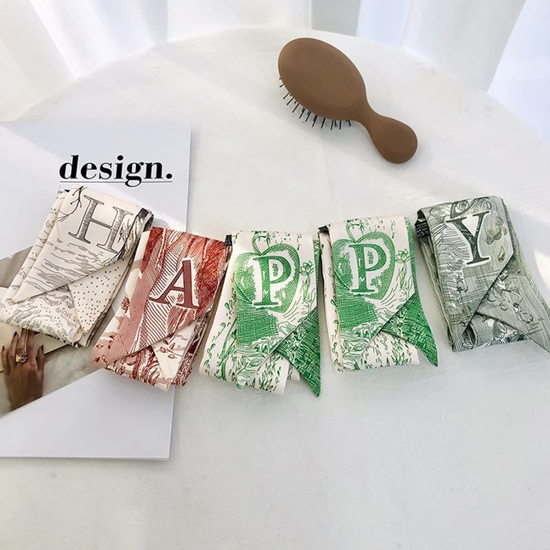Color: Orange - Sketch Style 26 Letters Temperament Small Scarf Long Silk Scarf Hair Band Narrow Headband Hair Tie Bag Handle Hair Accessories
