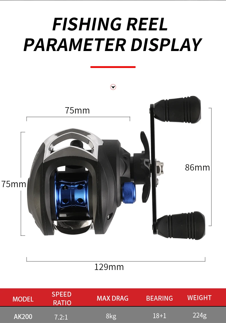 Color: Orange, Use Mode: Left Hand, Bearing Quantity: 18 - BILLINGS Baitcasting Reel AK Series,7.2:1 Gear Ratio 18+1BB,18LB Max Drag,Shallow Spool,For Freshwater Saltwate