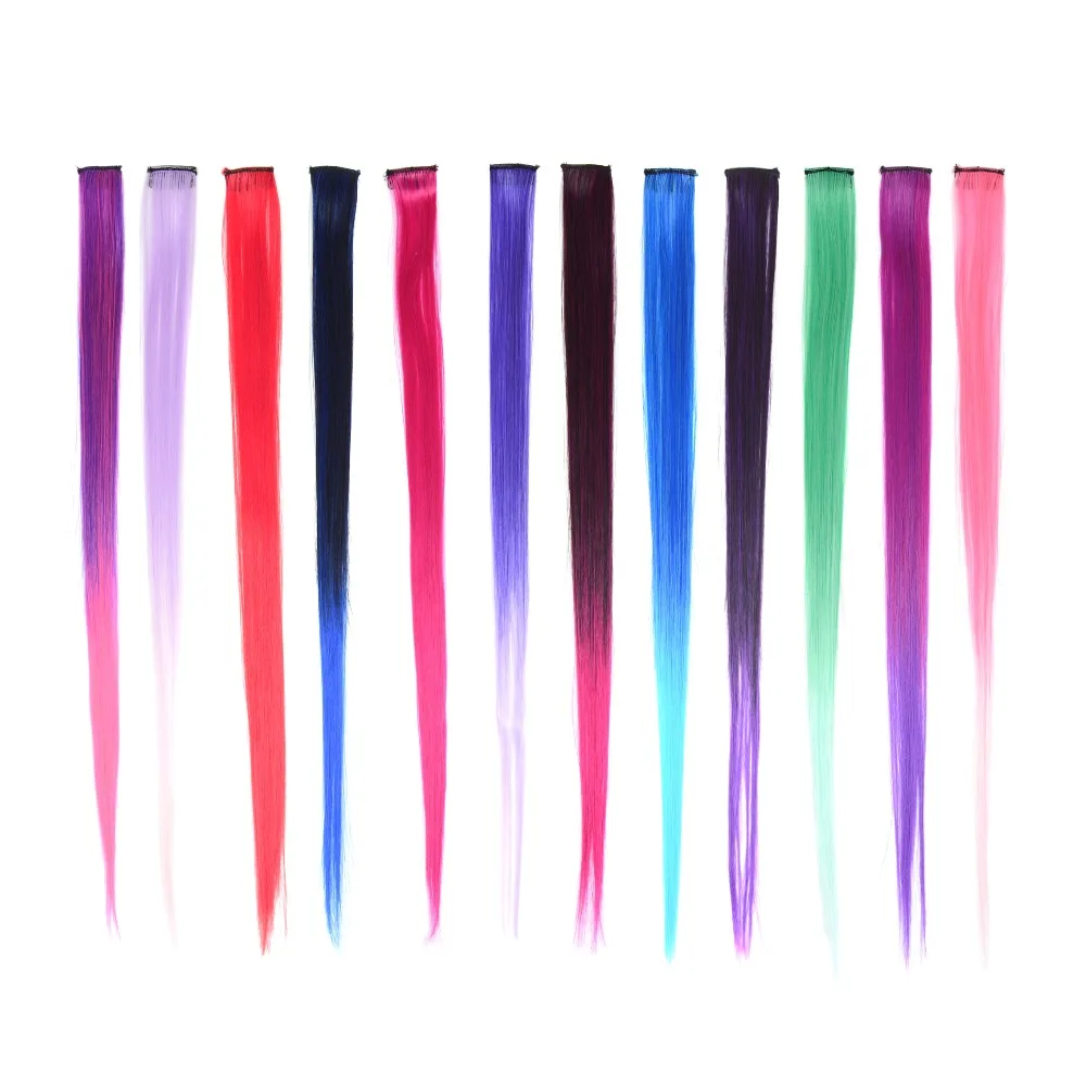 22" Long Straight Ombre Synthetic Hairpieces Hair Extensions Pure Clip In One Piece Color Strips Hairpiece for WomenÂ