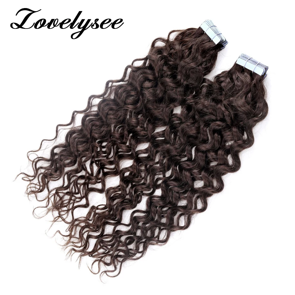 Color: P6/27, Length: 16 inches, Items per Package: 20 pcs - Water Wave Tape in Human Hair Extensions 2g/pcs Dark Brown Real Human Hair Adhesive Invisible Keratin Hair Extensions for Women