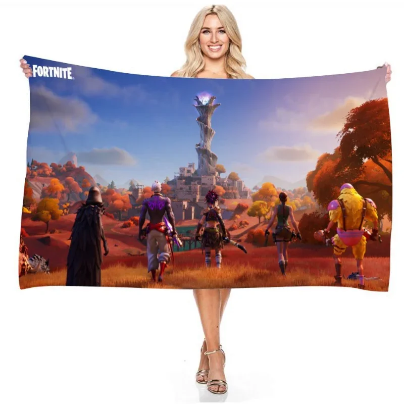 Color: PEACOCK BLUE, Size: 12" - Fortnite Children Microfiber Bath Towel Boy Girl Soft Wearable Cartoon Bathing Beach Spa Bathrobe Wash Clothing