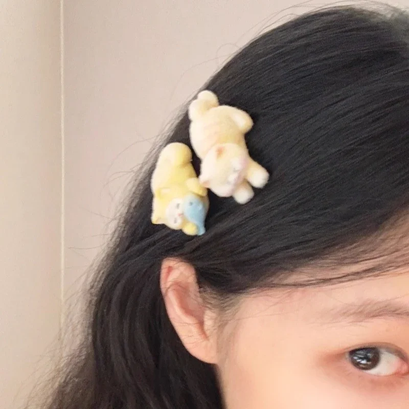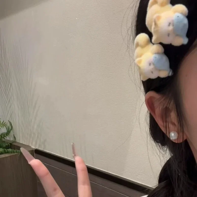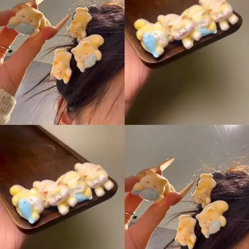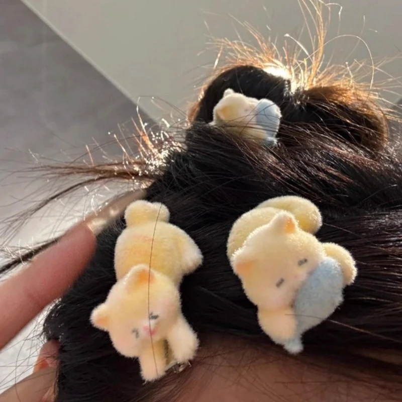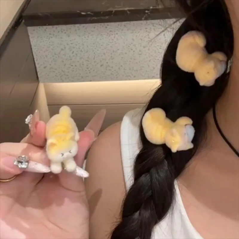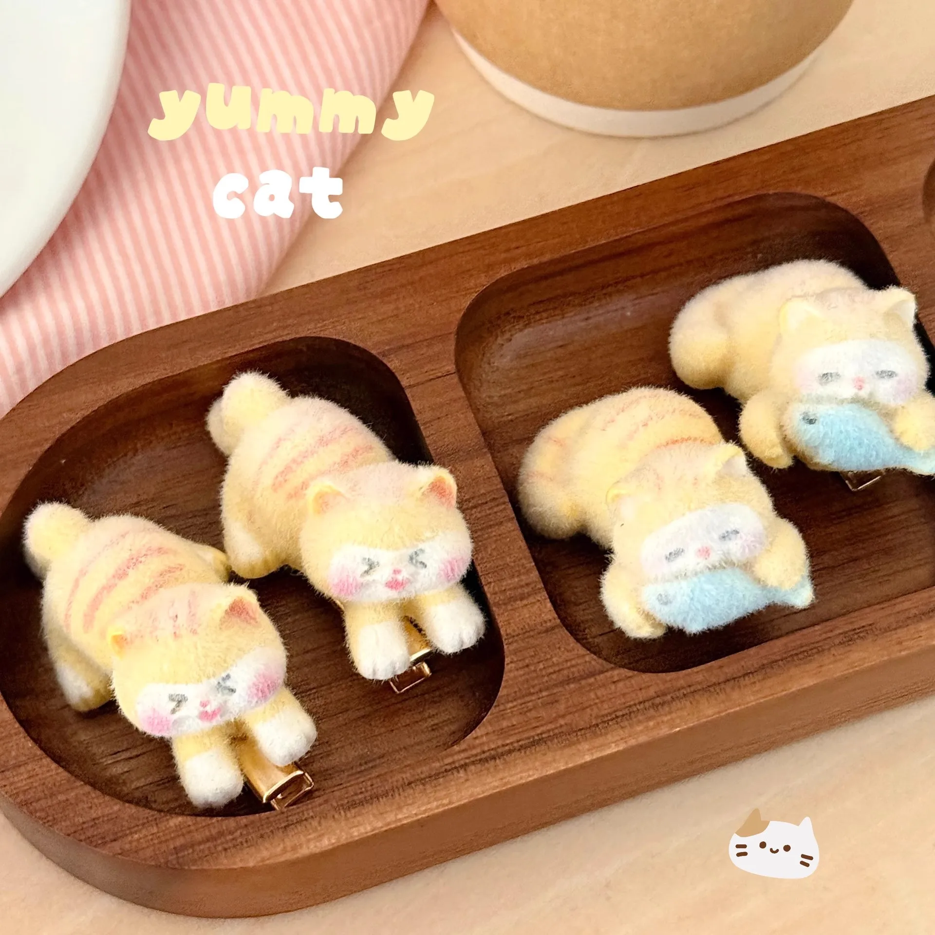 Color: Pink - 1/2pcs New Cat Flocking Hair Clip Plush Cute Cat Fish Hairpin Sweet Kawaii Hair Clips for Girls Kids Headwears Deraction Gifts