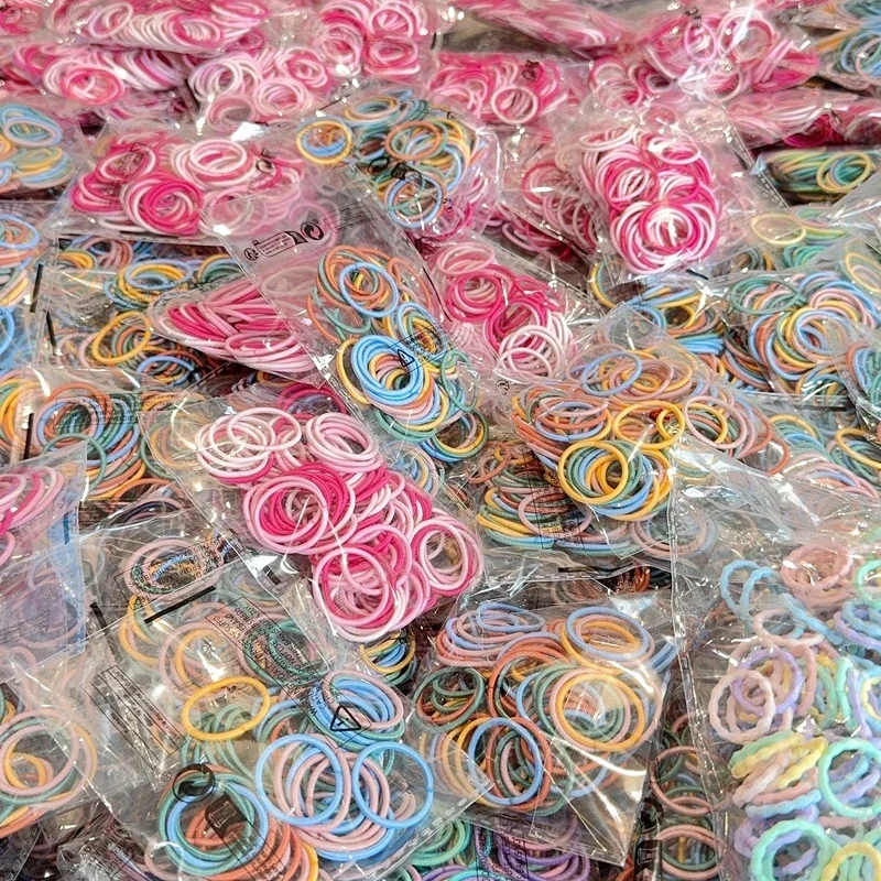 Color: Pink - [50Pcs/lot] Baby Rubber Band Does Not Hurt The Hair Small Thumb Ring High Elastic Thread Toddler Seamless Scrunchies Set