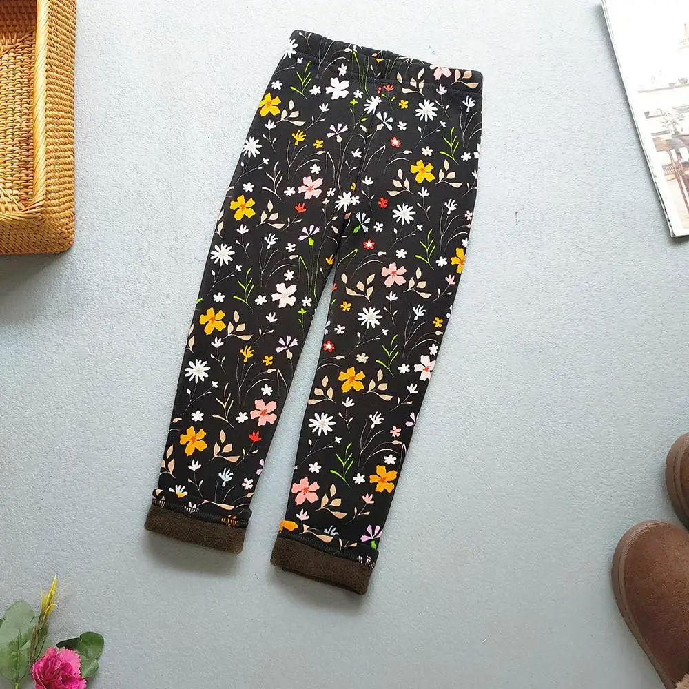 Color: Pink, Kid Size: 11 - Autumn Winter Print Flowers Thick Warm Kids Toddler Baby Girls Leggings Children's Pants