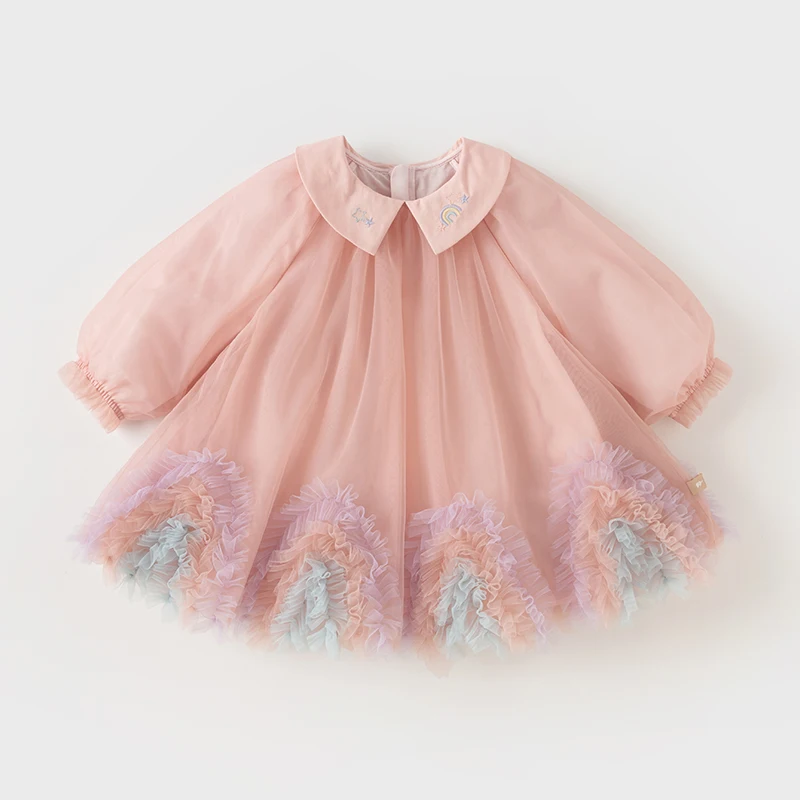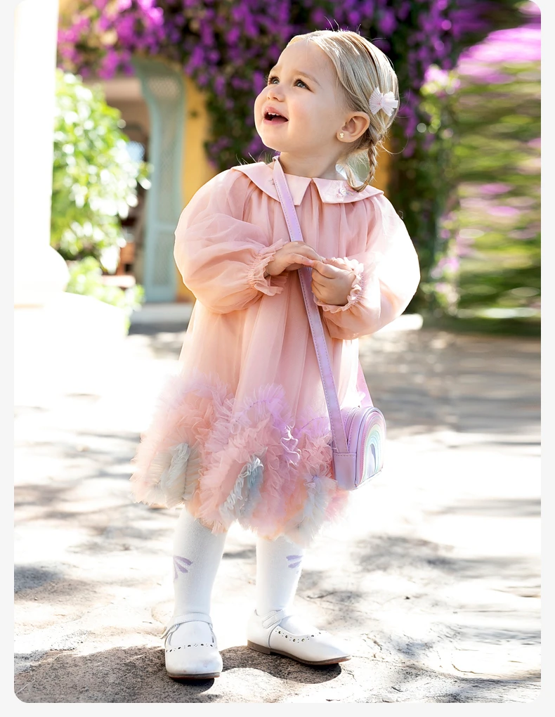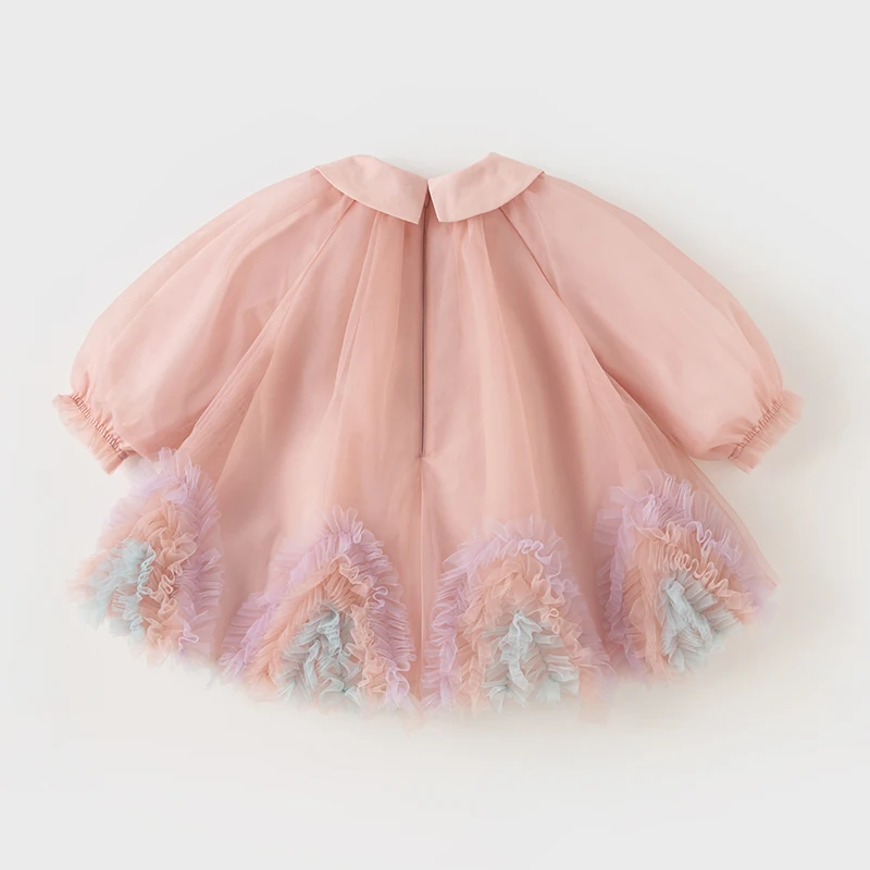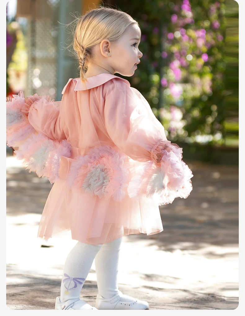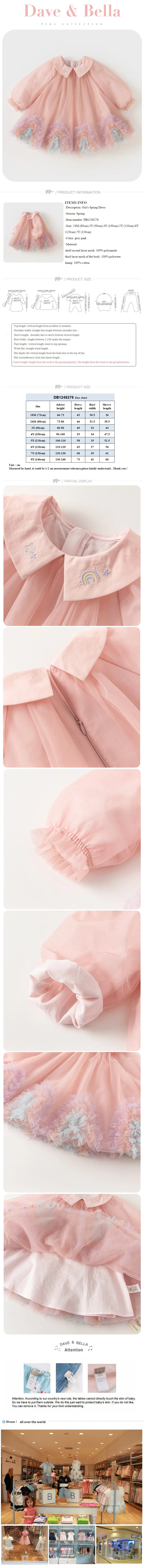 Color: Pink, Kid Size: 15t - Dave Bella Princess Dress for Girls Children Baby 2024 New Spring Noble Charm Sweet Classy Lovely Mesh Fashion Party DB1248276