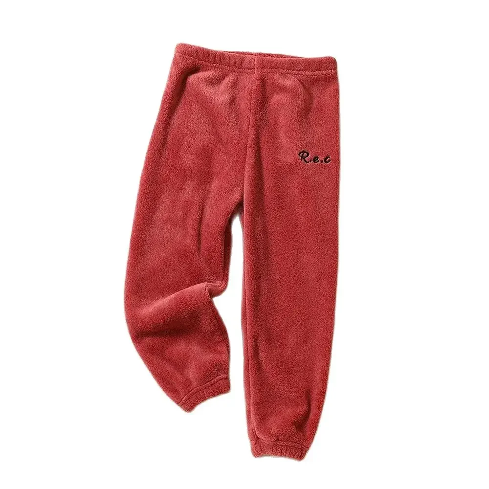 Color: Pink, Kid Size: 8 - Children Thicken Fleece Pants Boys and Girls Solid Letter Embroidery Sports Casual Kids Clothes Warm Leggings Clothing Winter