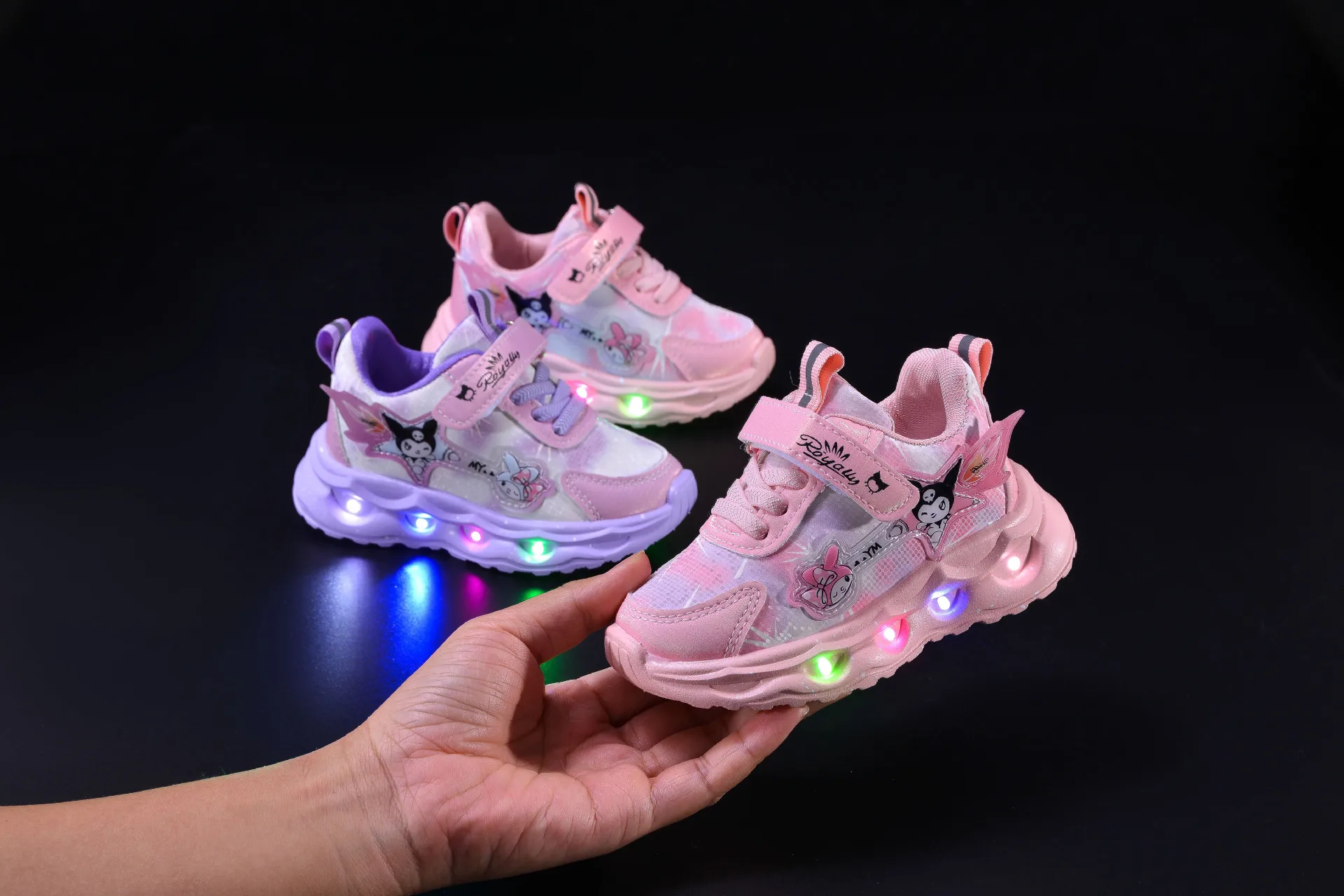 Color: Pink, Shoe Size: 17 - Kids'Casual Shoes Girls Led Light Cartoon PU Leather Spring Fashion Flat Bottom Anti-slip Soft Bottom Pink Purple Size 21-30