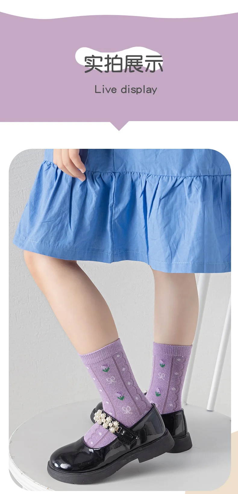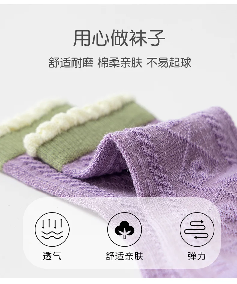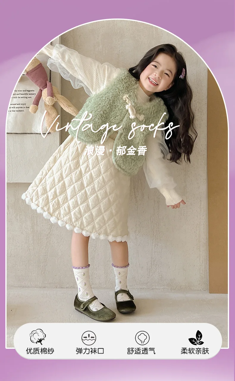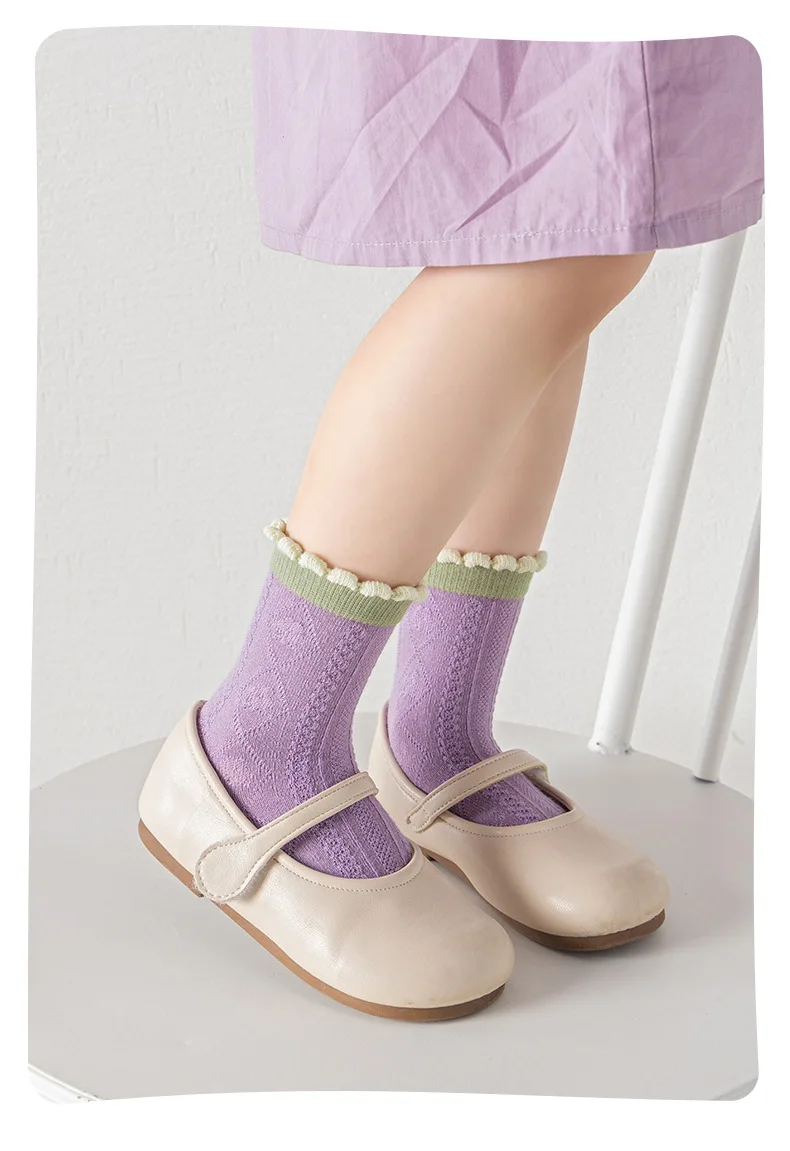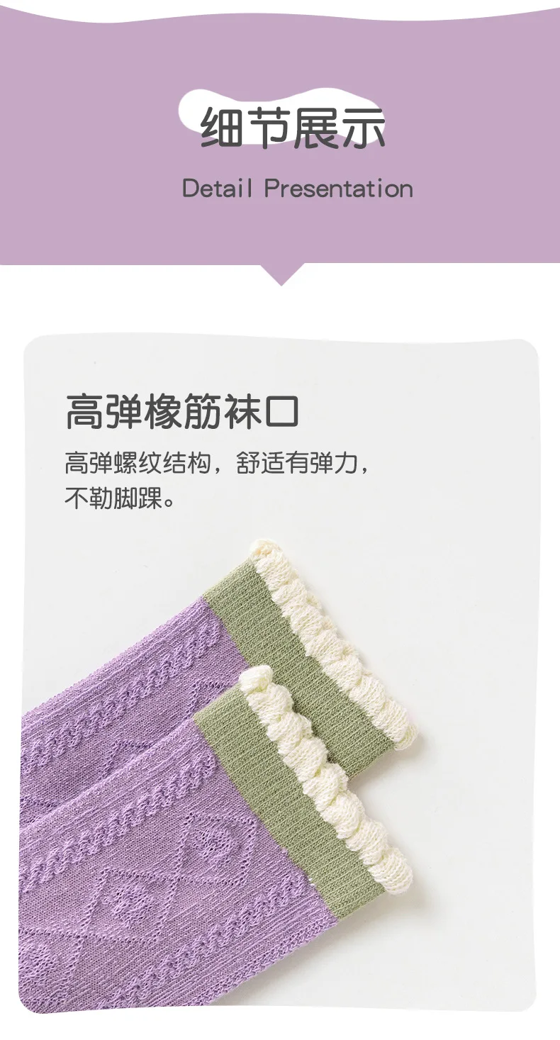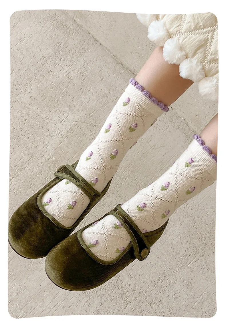 Color: Pink, Size: 10-12T - 5 pairs/lot Children's Socks Autumn Socks Girls Sweet Purple Floral Pattern Mid Calf Socks Baby Infant Cotton Socks