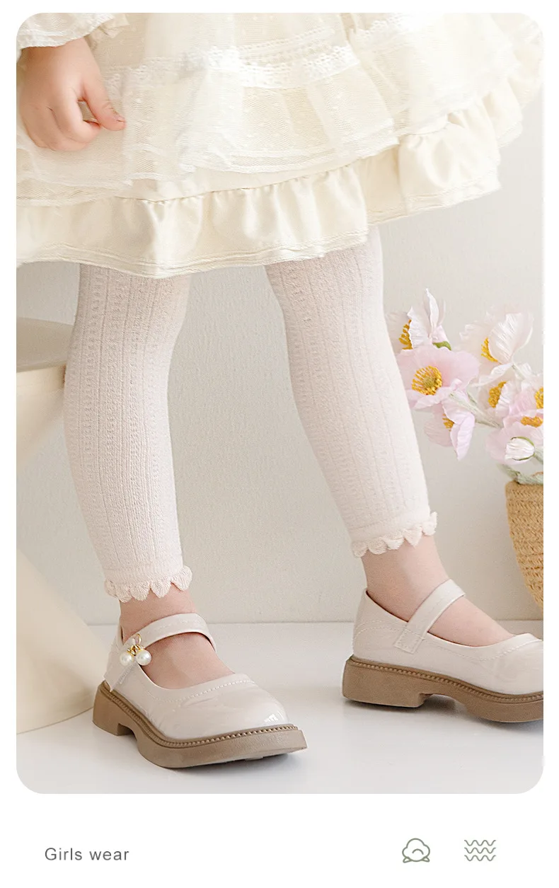 Color: Pink, Size: 92, Ships From: CHINA - Summer Spring Mesh Baby Girls Stretch Leggings Cotton Solid Ruffle Edge Toddler Kids Pants