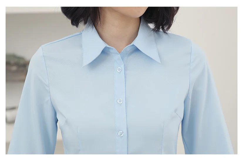 Color: Pink, Size: L - Elegant Women Shirts Woman White Shirt Long Sleeve Blouse Office Lady business Pink Shirts Button Solid Women work Blouses Tops