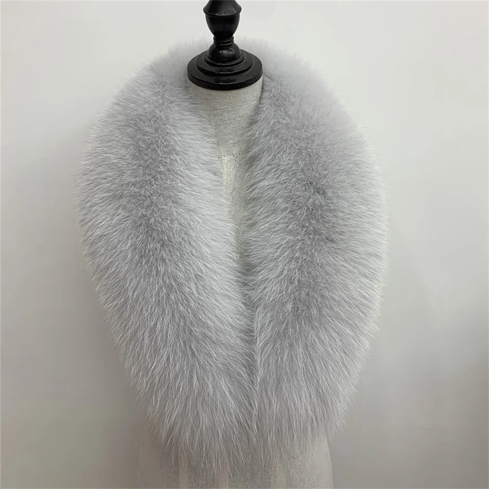Natural Color Raccoon Fox Real Fur Collar Scarf Genuine Big Size Scarves Warp Shawl Neck Warmer Stole Muffler with Clip Loops